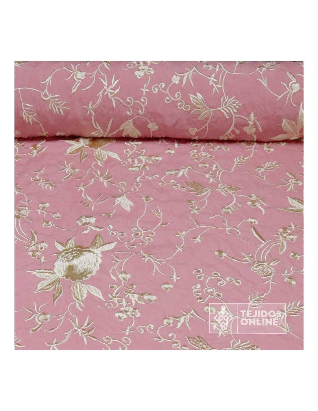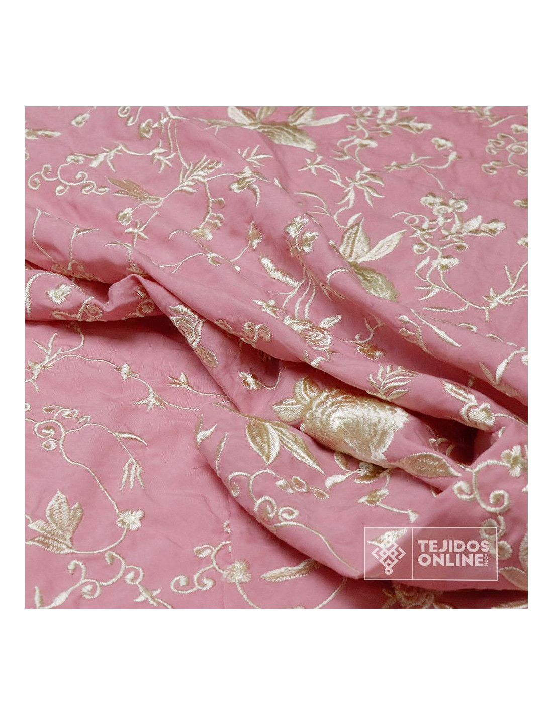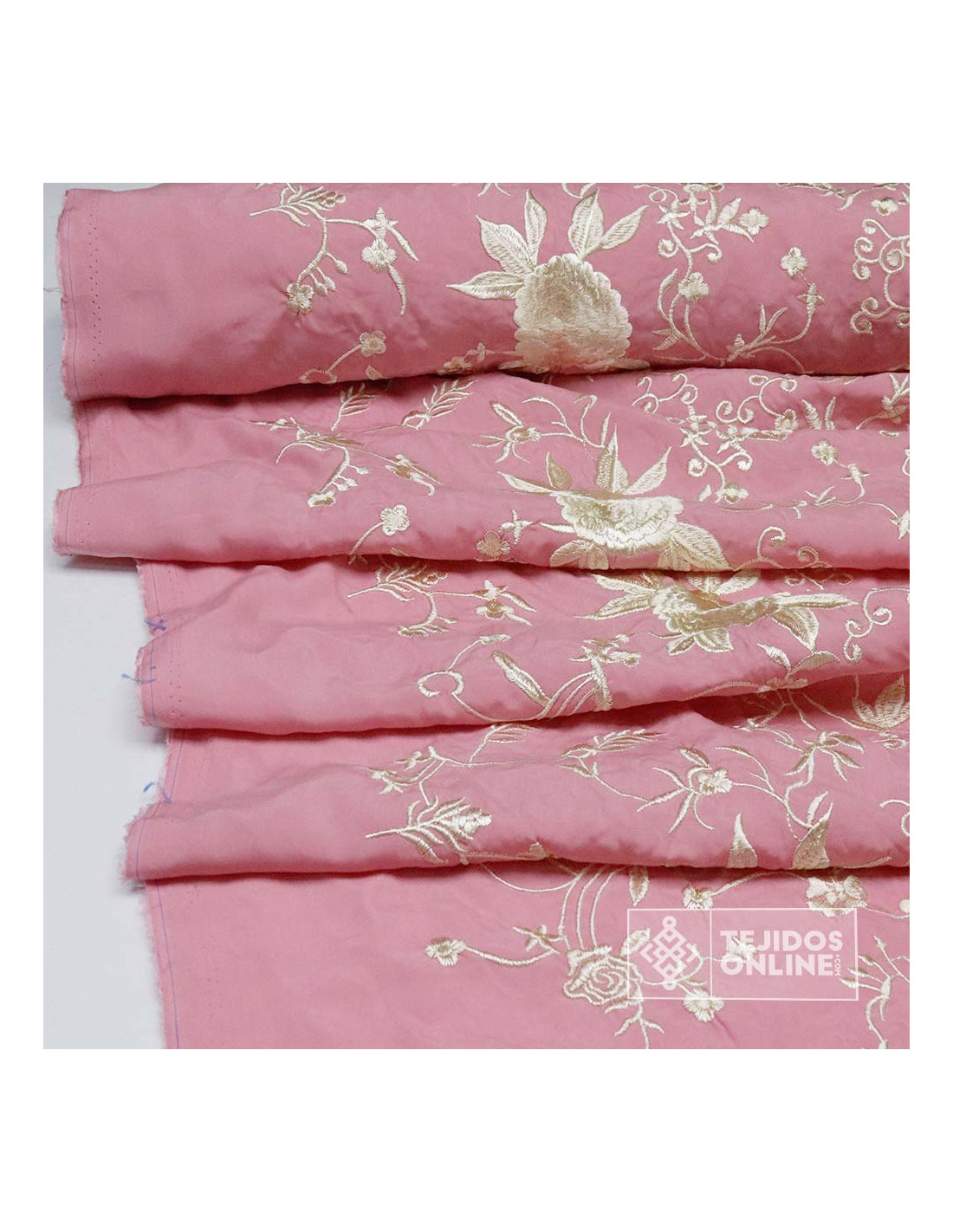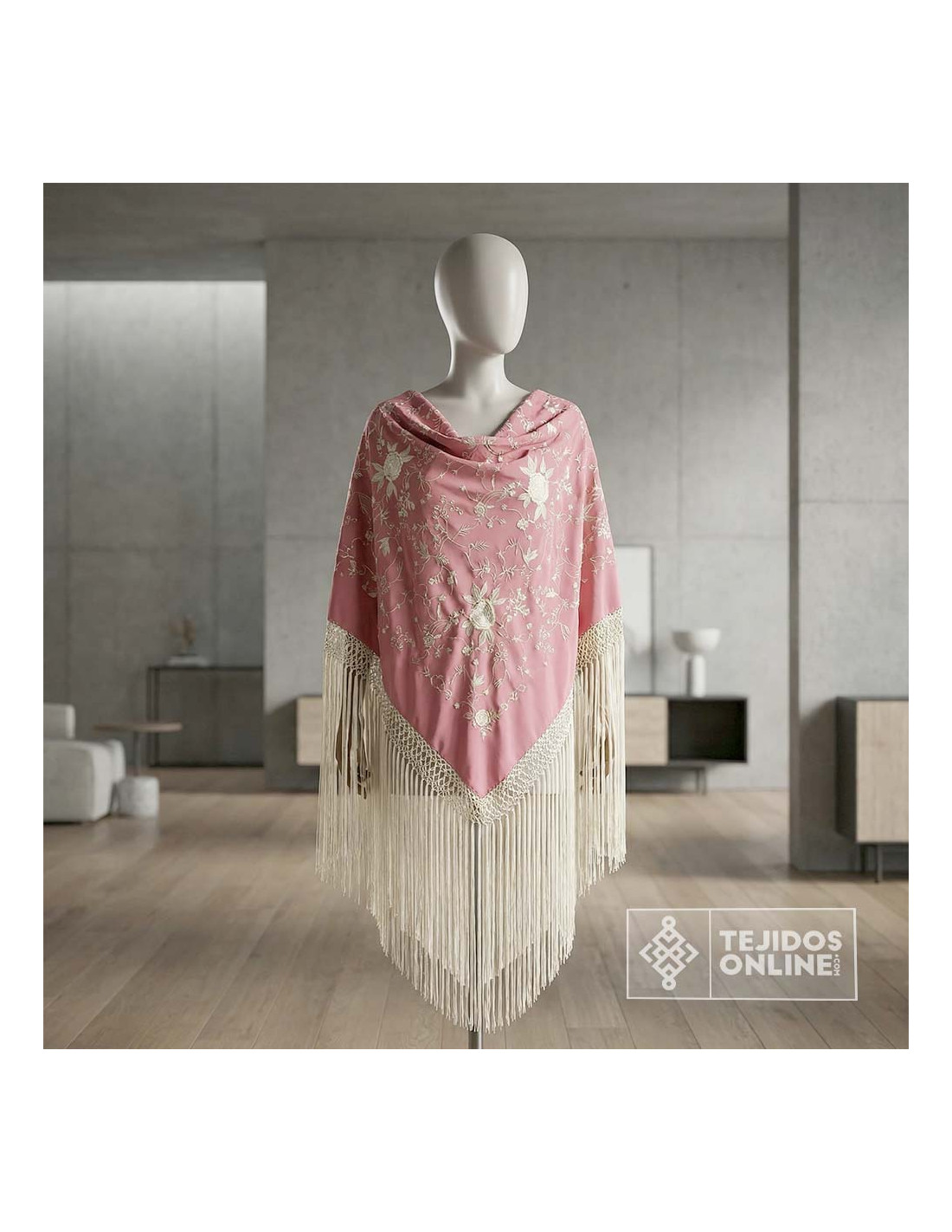 En el mundo de las telas para mantón de manila y también conocido como mantoncillo, pocas pueden presumir de la elegancia y calidad que ofrece esta maravillosa viscosa bordada ideal para mantones. Esta tela compuesta en 80% viscosa y 20% algodón donde se caracteriza por su fondo en color maquillaje y bordados en flor de un color champang en diferentes tamaños y posiciones donde se destaca un precioso ramo.