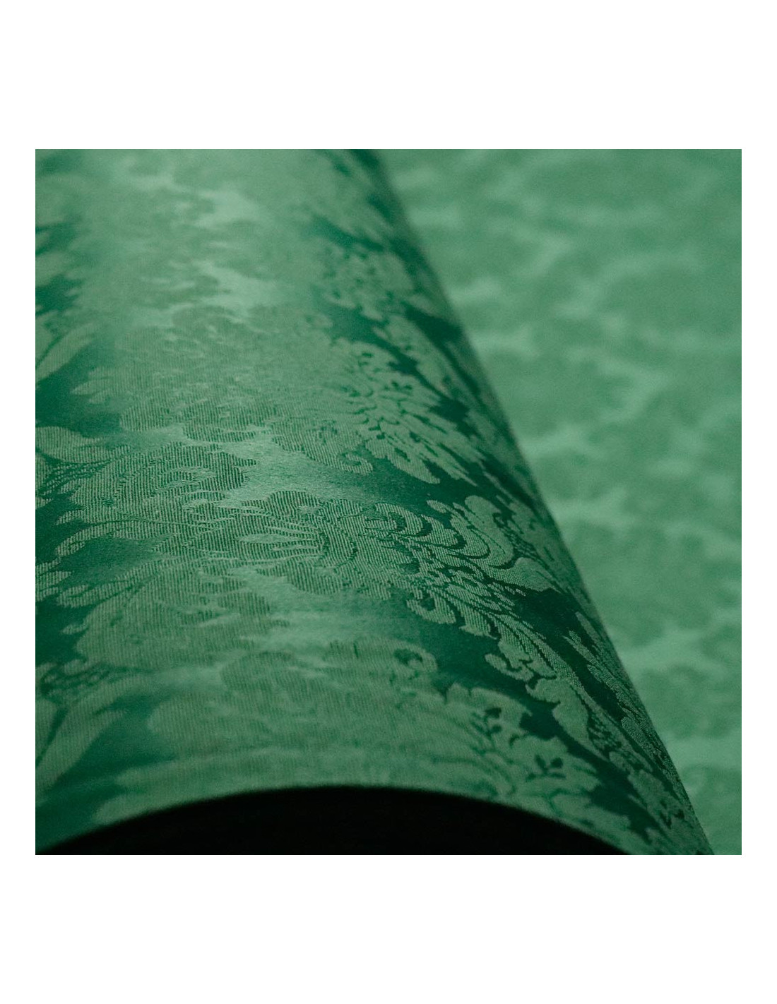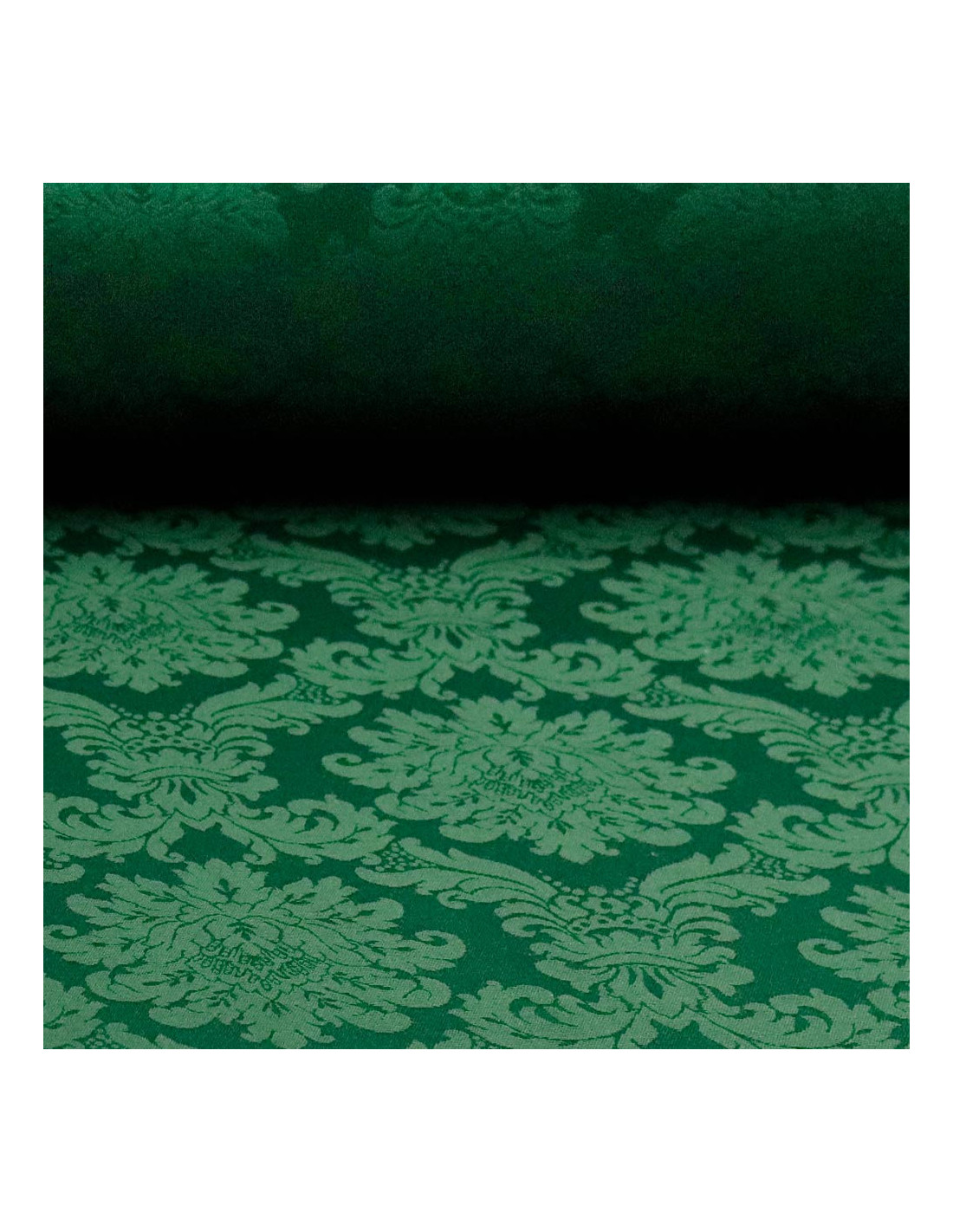 Damasco Verde Versace, tejido con cuerpo y buena caída. Tela con ancho de cortina ( 2,80 mtr de ancho). Tejido fondo verde con brocados en formas de medallón de un color más oscuro (tejido con derecho y revés). El damasco es ideal para todo tipos de tapizados ,(sillones, carruajes…), confecciones cofrades, cortinas, manteles, etc… En galería podréis mostrar una imagen con las dos caras del tejido.