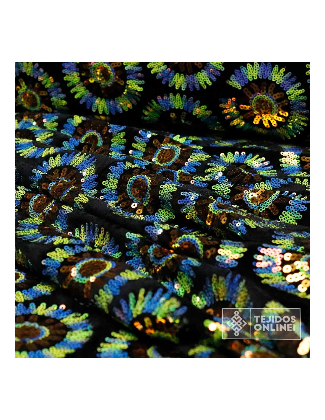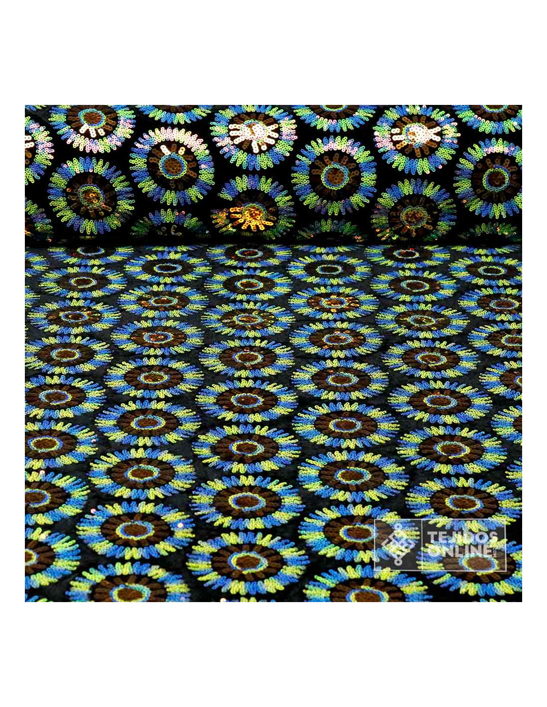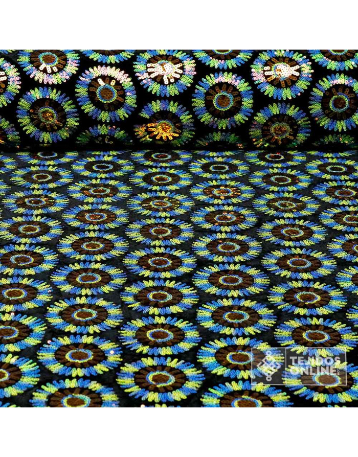 Lentejuelas Flor Circulo Verde y Azul
