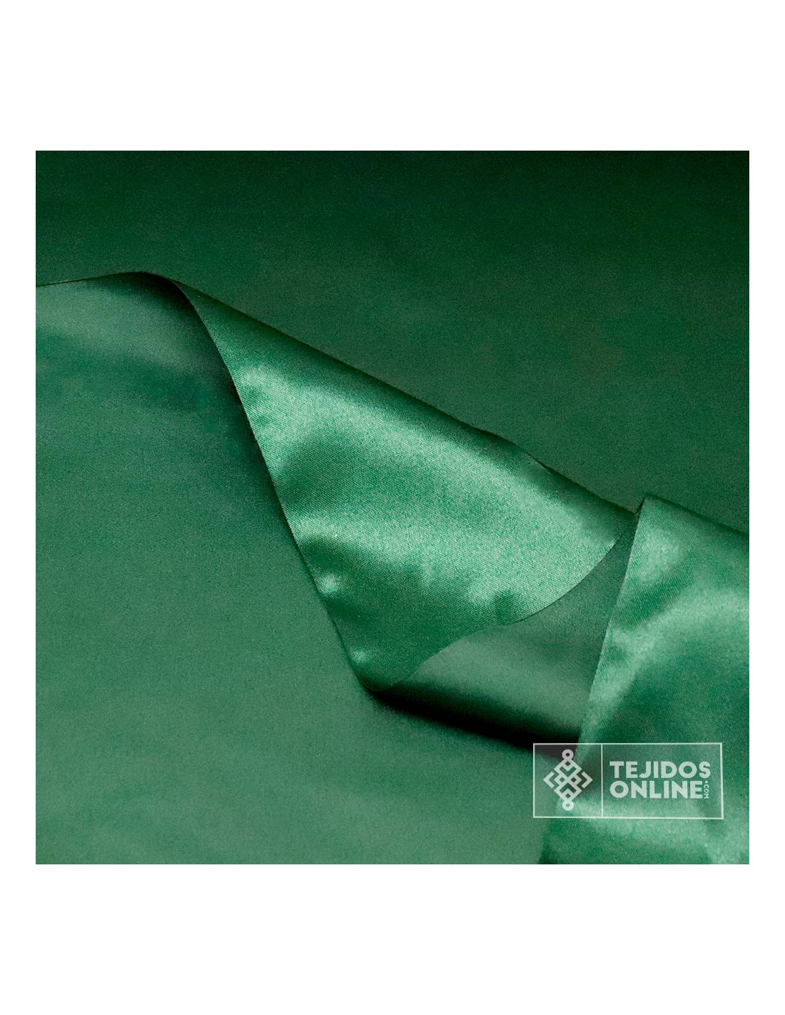 Esta Tela Raso Verde Botella es un tejido que se diferencia por su superficie lisa y satinada (brillante) en una cara del tejido , mientras que la otra es mate. Este efecto se logra mediante una técnica de tejido especial donde los hilos se entrelazan de manera que reflejan más luz, creando ese brillo distintivo que lo hace tan atractivo.