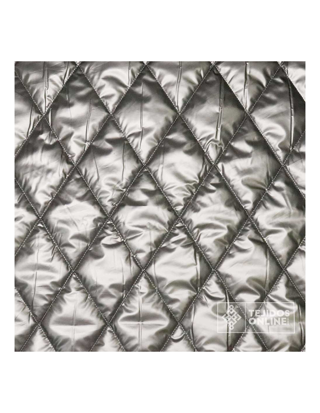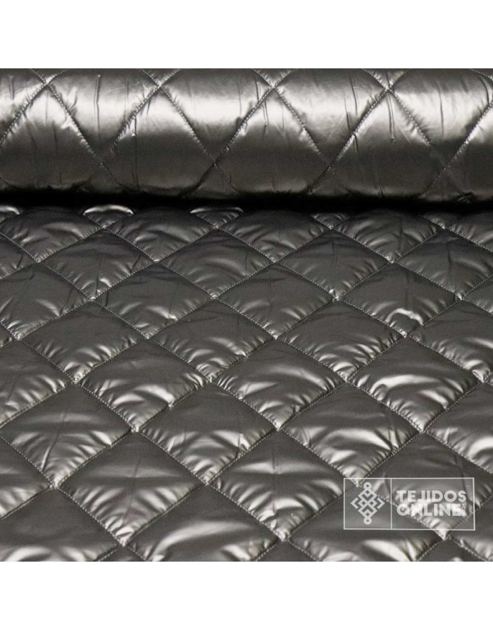 Magnífica tela y de gran calida en color plomo. Esta tela Acolchada en formas de rombos es un tejido de tacto muy suave de cierto grosor y de poco peso. Acolchado donde destaca su diseño en grandes rombos en color plata de tono plomado del cual hacen de él una tela perfecta para cualquier proyecto de moda. Esta tela acolchada está compuesta de una fina tela color plata compuesta en poliéster y fijada a una fibra de guata de poco grosos y a su vez forrada, lo que la hace ideal para que puedas trabajar con ella en todo momento.