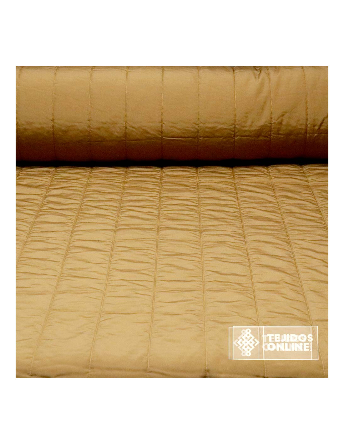La tela acolchada Camel es un tejido de tacto muy suave de cierto grosor y de poco peso. Acolchado donde destaca su diseño al estilo rayas del cual hacen de ella una tela perfecta para cualquier proyecto de moda. Esta tela acolchada está compuesta de una tela color camel y fijada a una fibra de guata de poco grosos lo que la hace ideal para que puedas trabajar con ella en todo momentoca