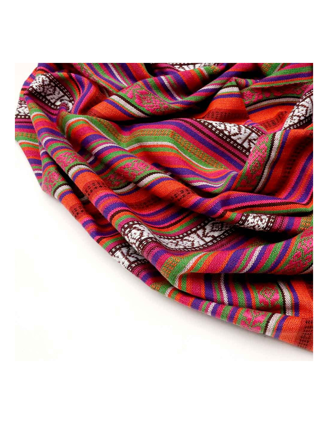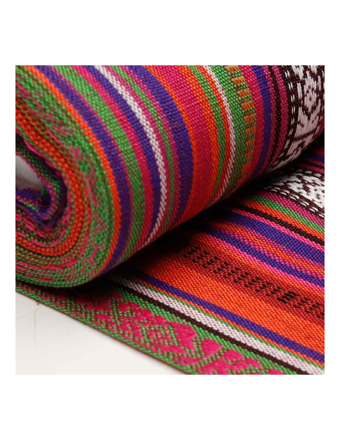 La de Tela Alpujarreña Moisés destaca por su color naranja fuerte siendo de ella una tela alpujarreña clásica, elegante, con suavidad y cierto cuerpo. El Tejido de Alpujarreña es una tela con cuerpo y a su vez con poco peso, siendo justo para crear estructura a la prendas siendo así un tejido de calidad. La Alpujarreñas se caracterizan por sus tramado en rayas y en su mayoría formando dibujos aztecas en diversidad de coloridos. El tejido alpujarreña, es ideal para todo tipo de confecciones como: chaquetas, faldas, pantalones, cortinas, tapizados, bolsos, carteras, riñoneras, trajes medievales, trajes de hebreo etc.