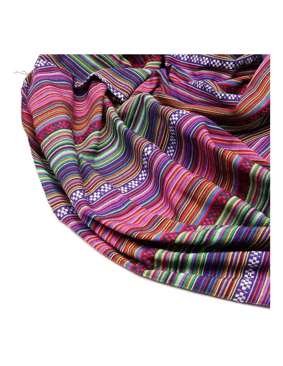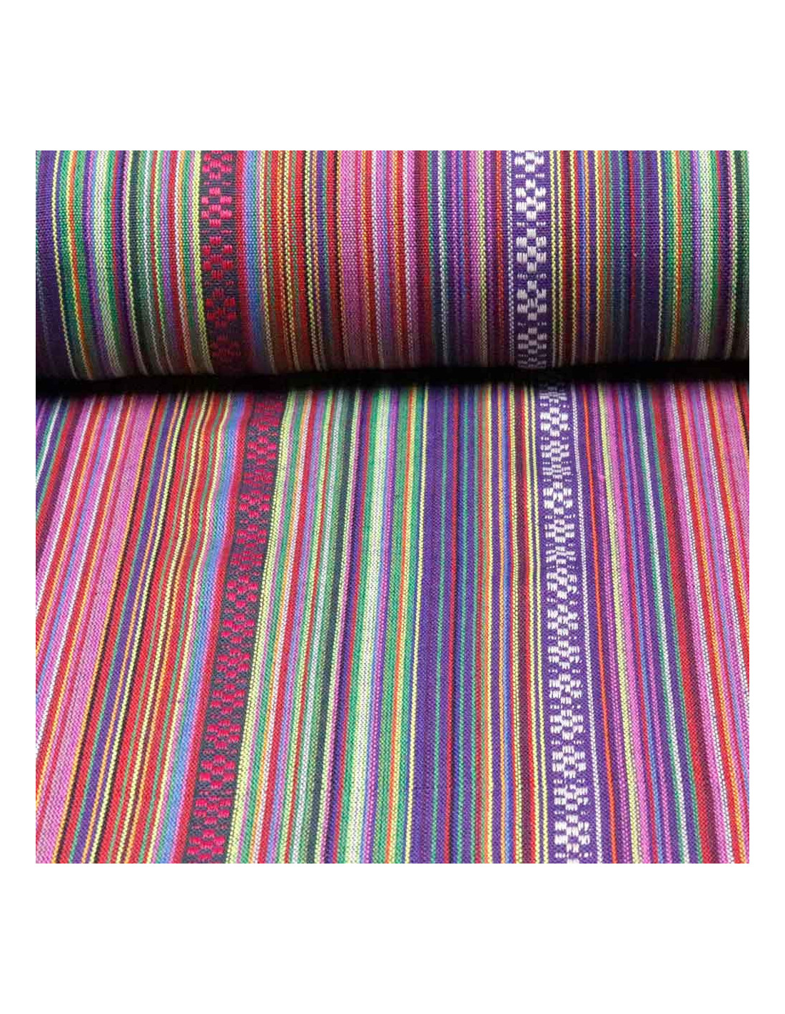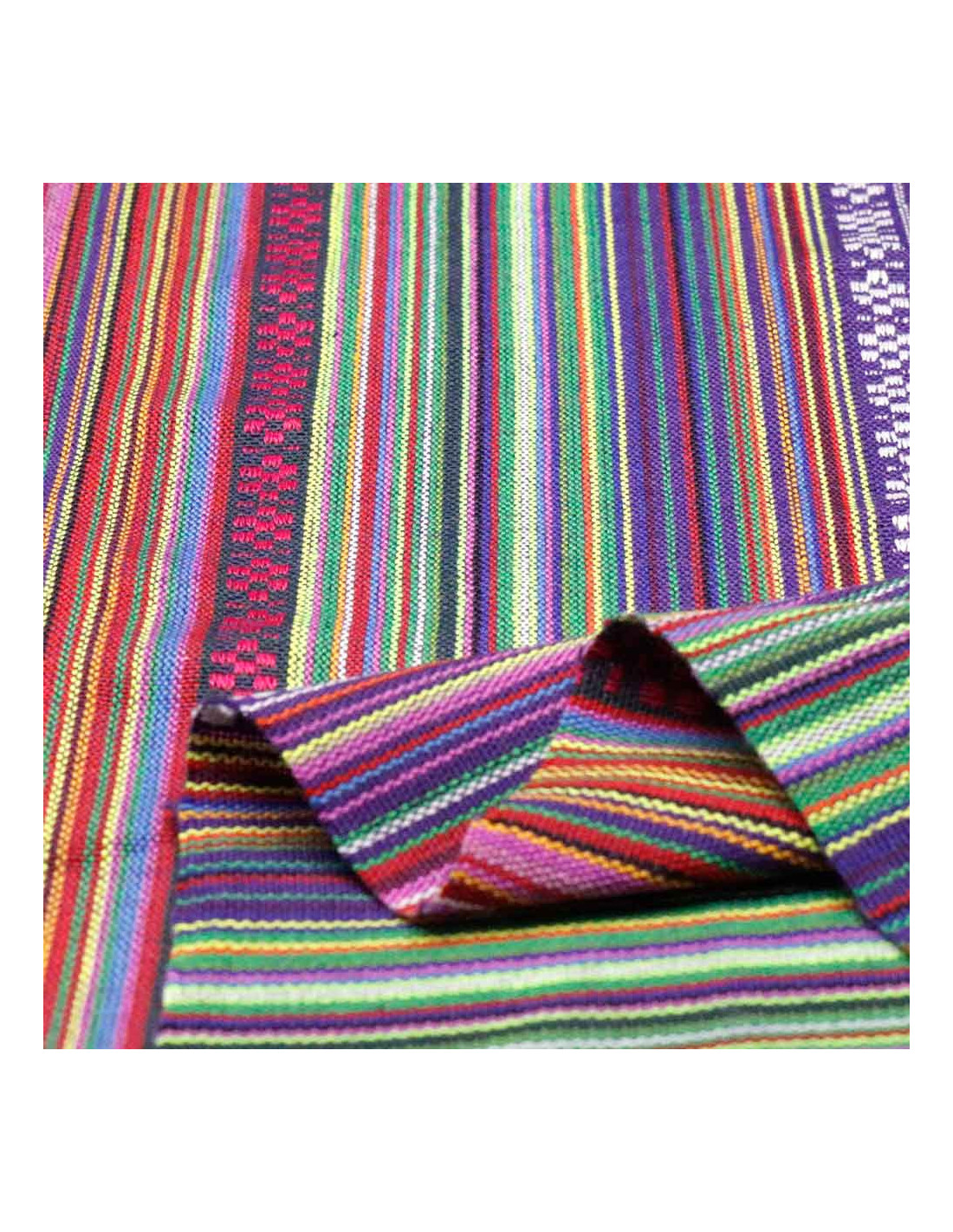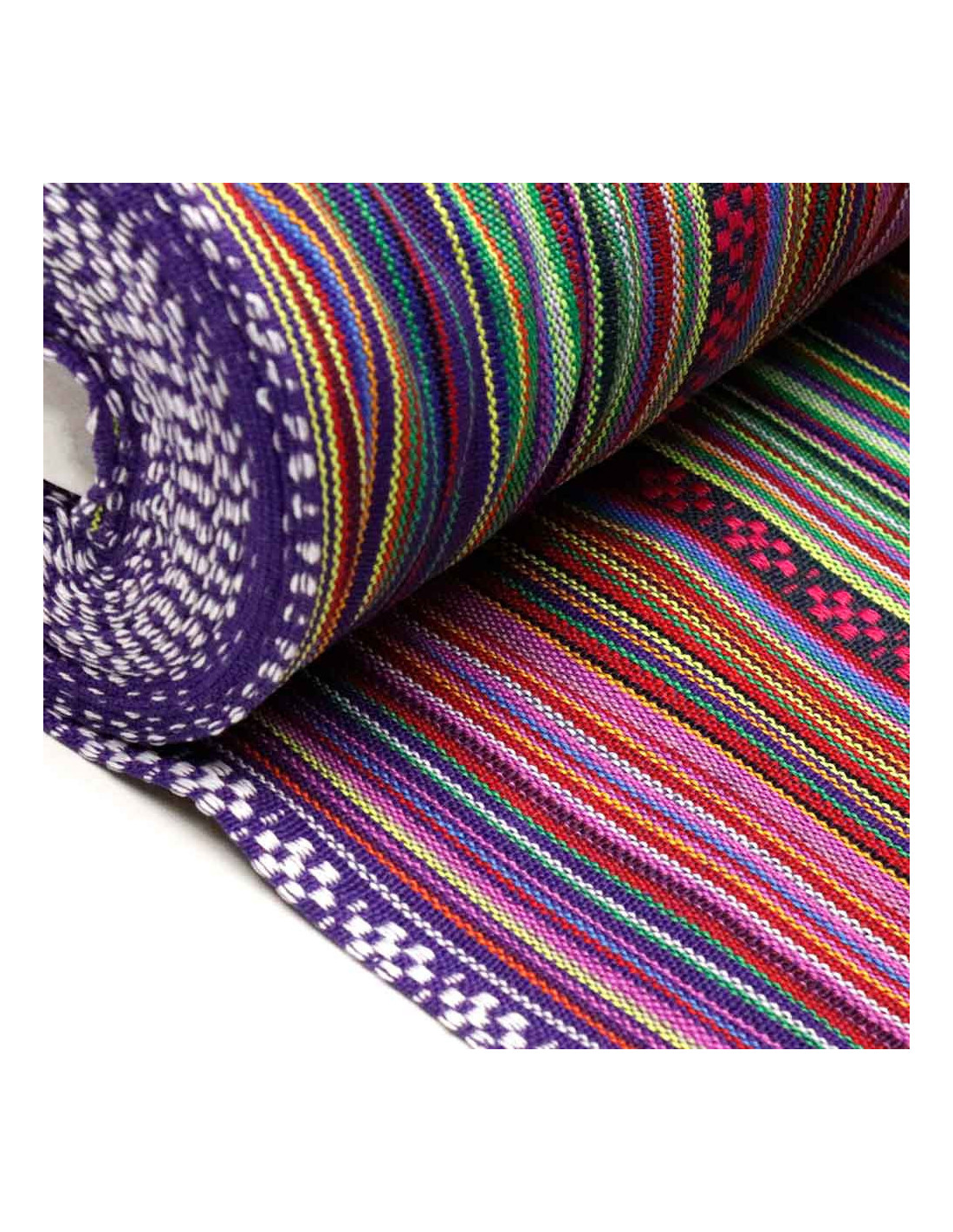 Las Telas Alpujarreñas se caracterizan por sus tramados en rayas y dibujos aztecas, que dan vida a diseños únicos y llamativos. La Tela Alpujarreña Abraham no es una excepción, con sus colores morado y verde que se entrelazan en un patrón de espigas o en una amplia variedad de tonalidades vibrantes.