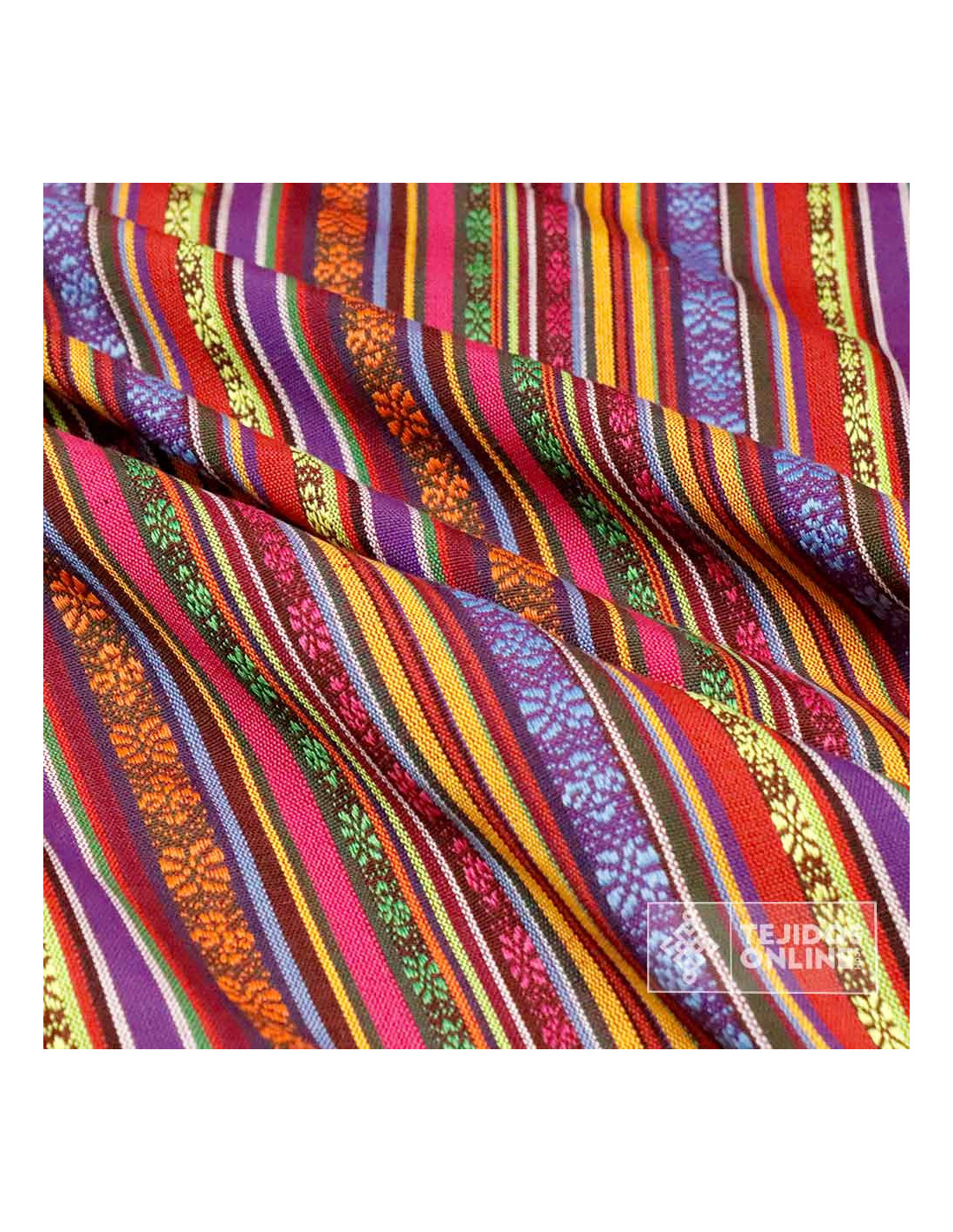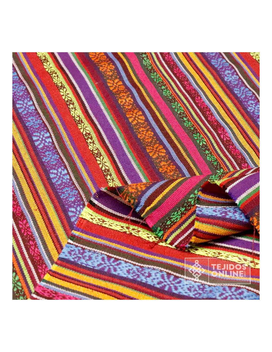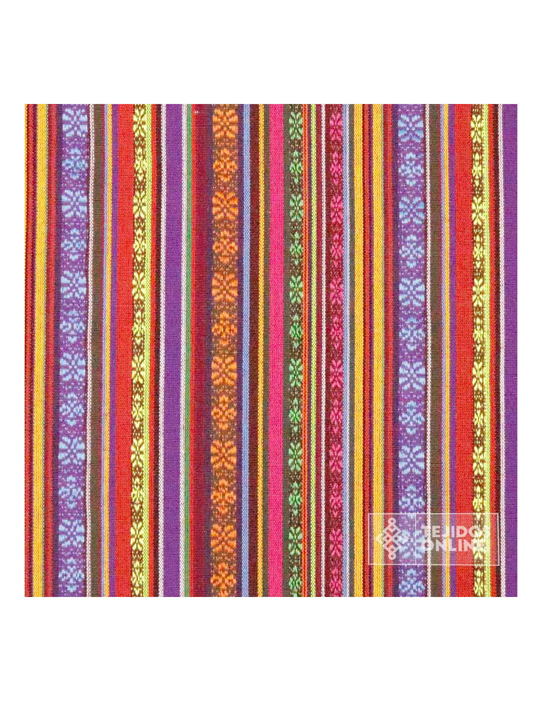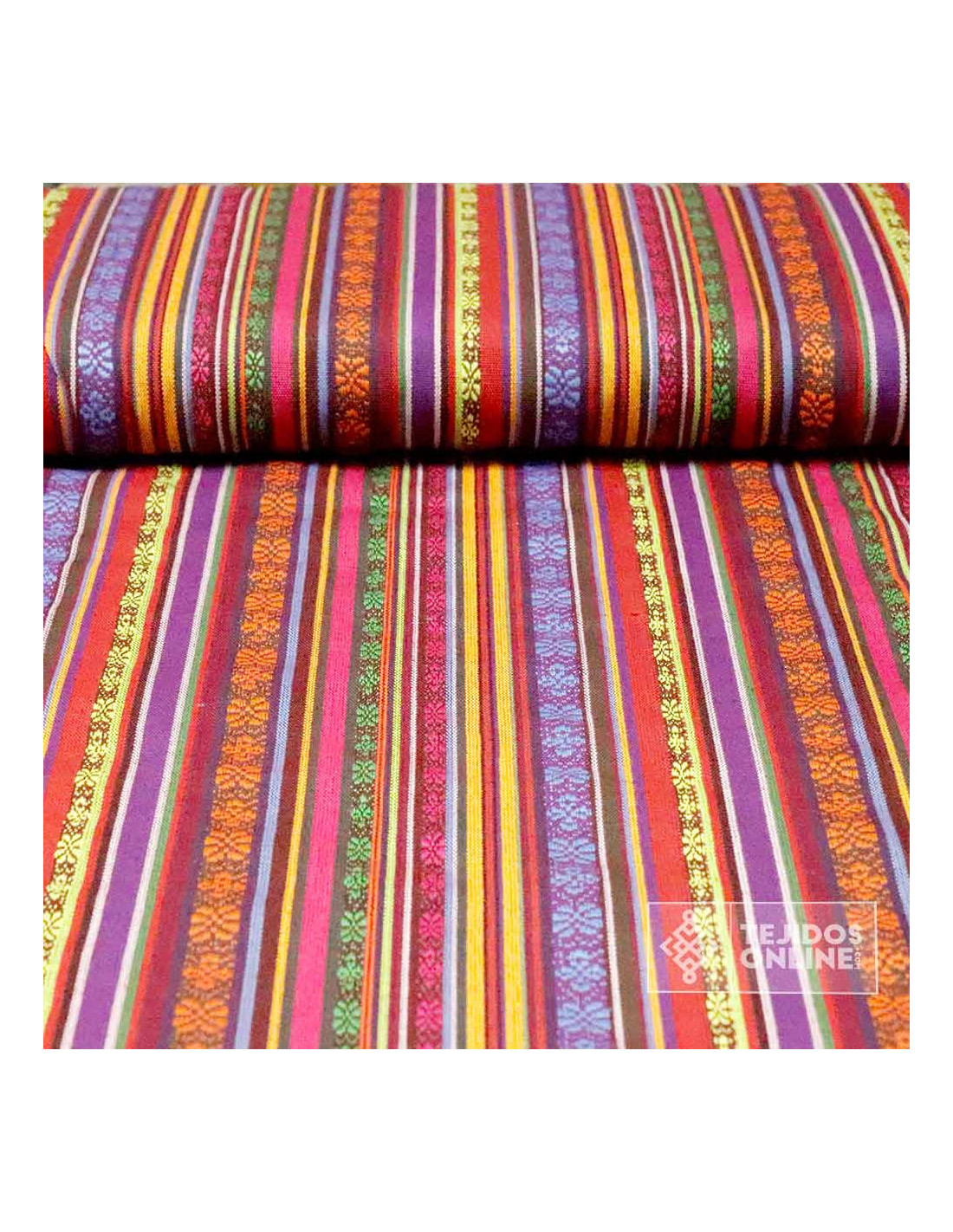 La Tela Alpujarreña con Rayas Moradas es una tela típica de la región de Las Alpujarras, donde destaca su estilo rústico donde predomina sus rayas color moradas y naranjas, es más, este tejido destaca por ser un tejido resistente. La tela de alpujarreña se diferencia por su tacto de sensación gruesa, ser un tejido de poco peso, con cierta grosura y con un diseño de rayas multicolor donde su dibujo está formado por rayas de una anchura aproximada de 1 cm de grosor.