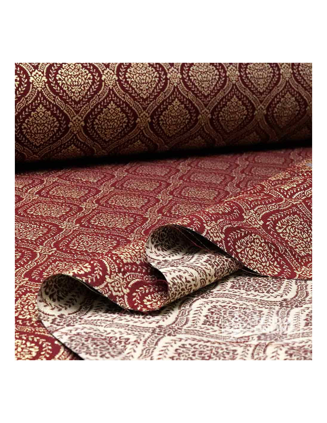 Tela Brocada Burdeos con Dorado. ¡ Desúbrela !