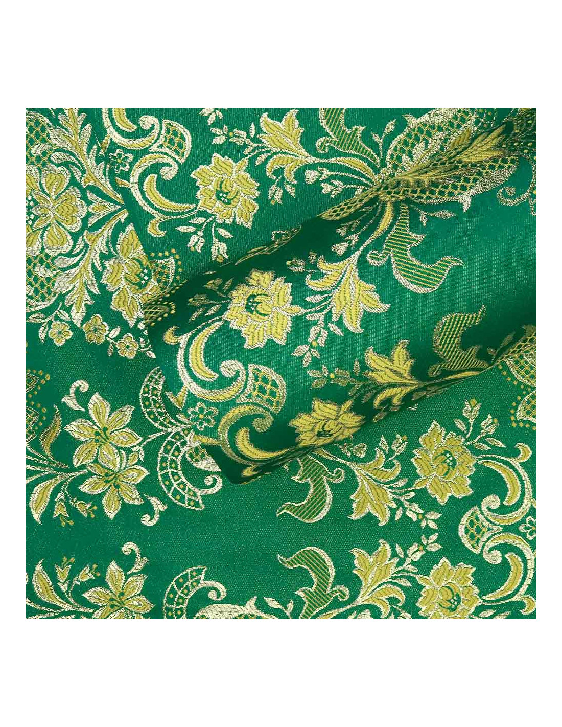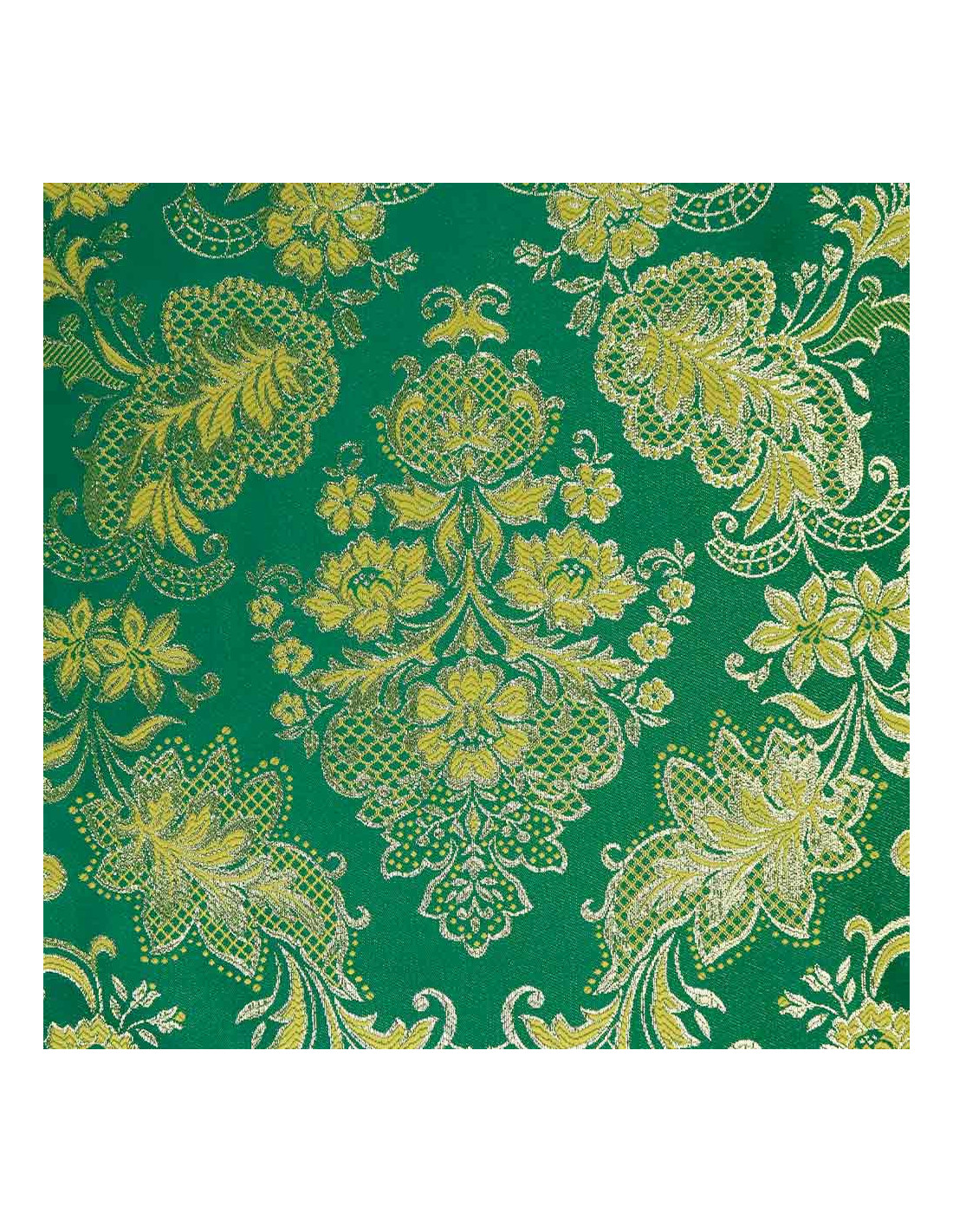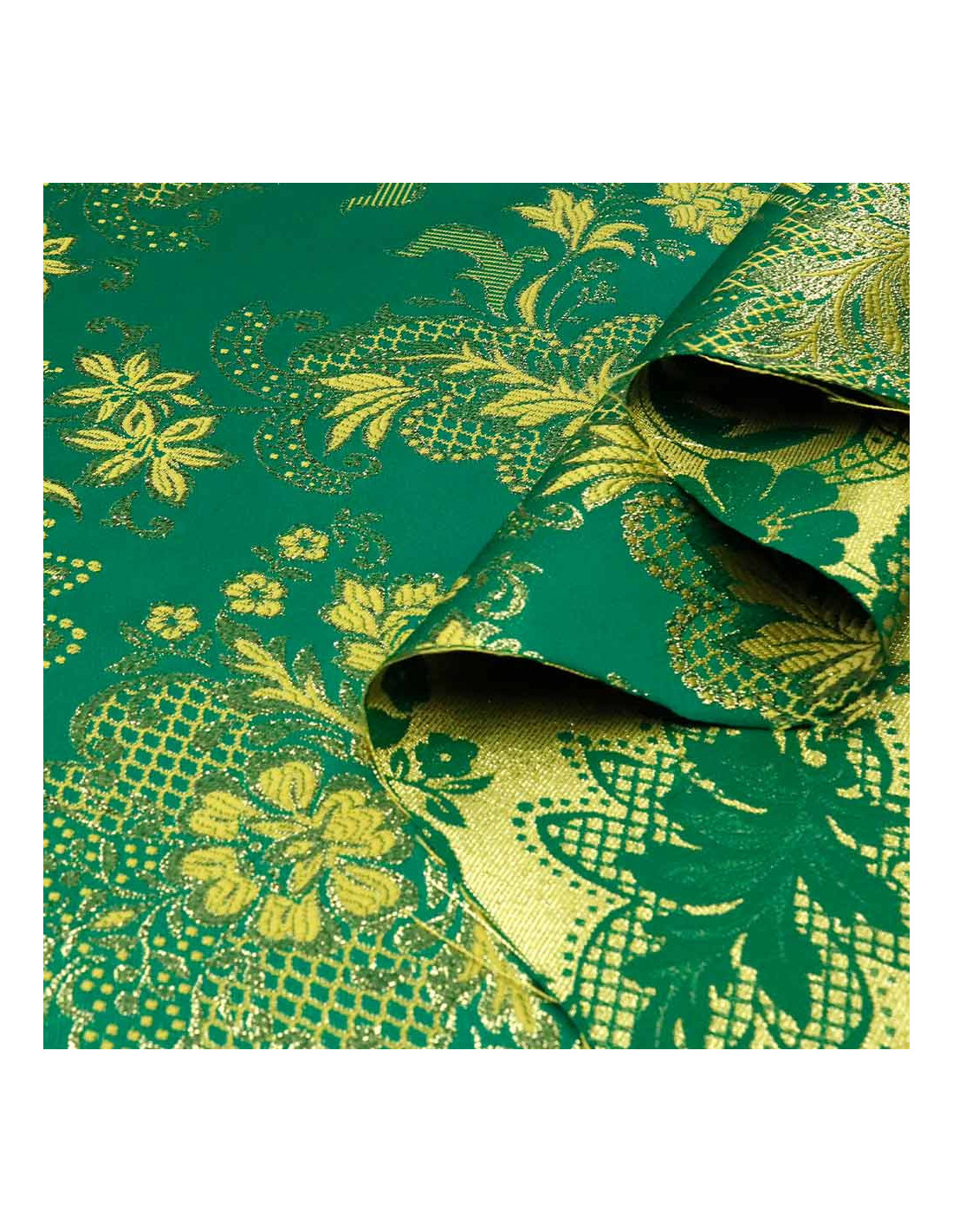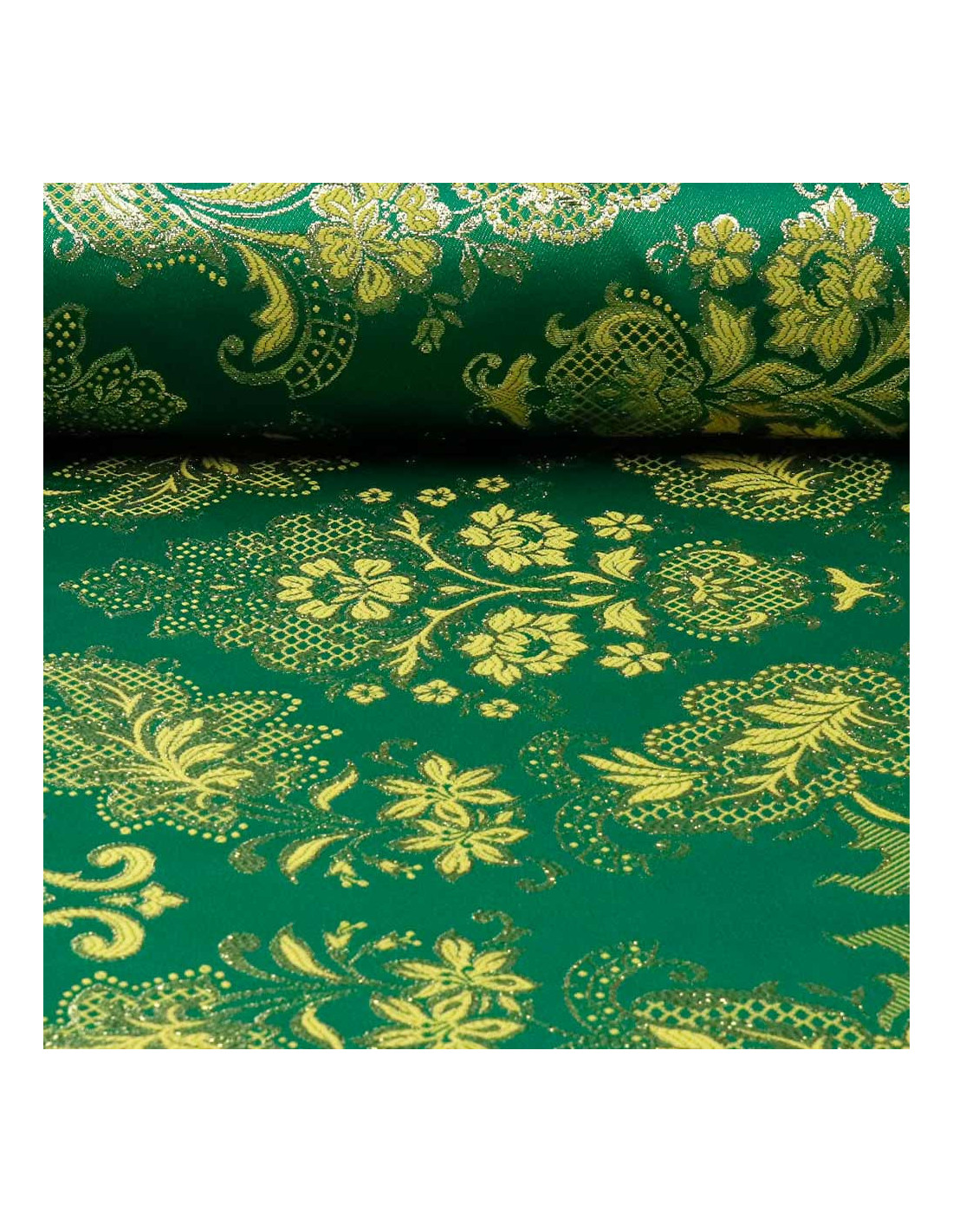 Brocado Verde Salamanca, tejido con mucho cuerpo y buena caída. Tela con ancho de cortina ( 2,80 mtrs. de ancho). Tejido fondo verde y brocado con laminado dorado. Tejido de gran calidad.