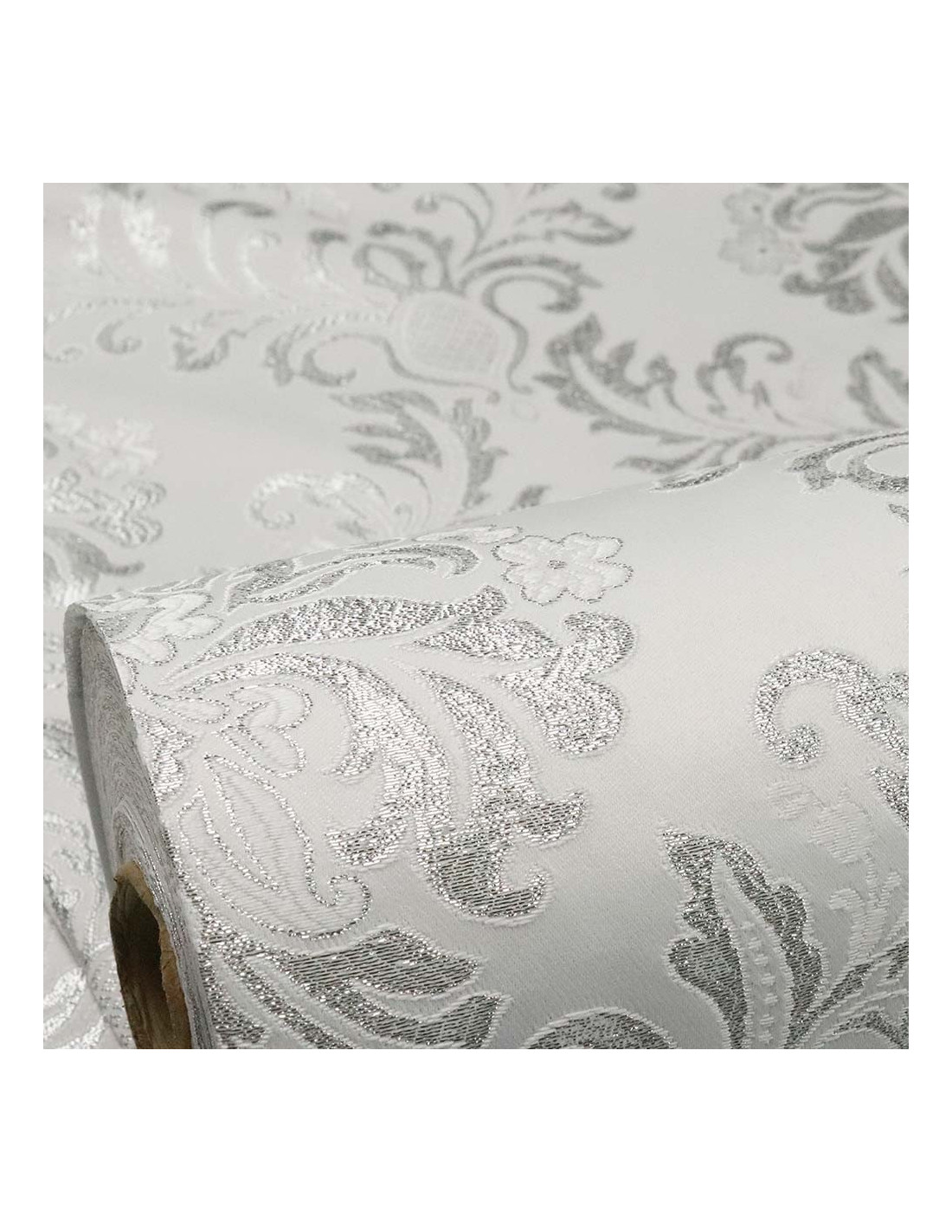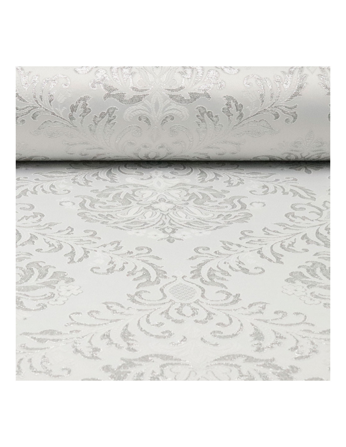 Brocado Cofrade Plata; Tejido con mucho cuerpo y buena caida. Tela con ancho de cortina ( 2,80 mtrs. de ancho). Tejido fondo gris claro y brocado con laminado plateado. Tejido de gran calidad.Este Brocado,es ideal para todo tipos de tapizados, (sillones, carruajes…) confecciones cofrades, cortinas, mantelerias, etc…