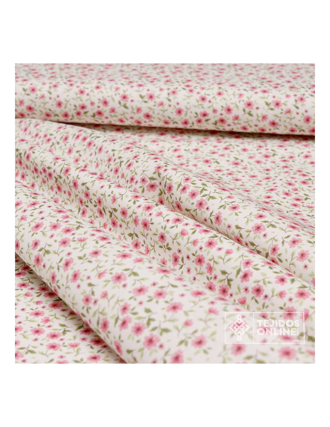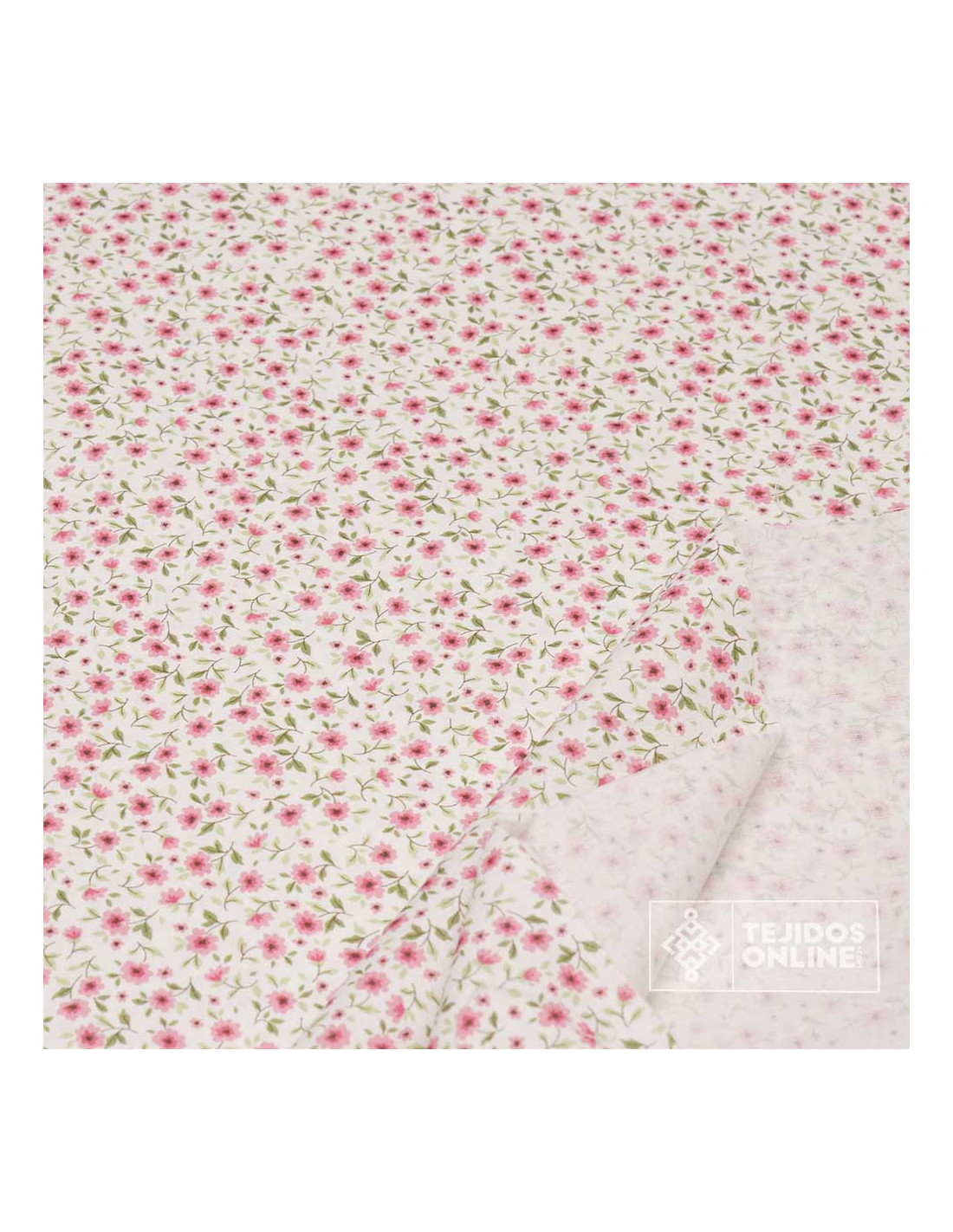 Con 1,45 metros de ancho y un peso aproximado de 125 gr/m², este tejido es suave, agradable al tacto y sin elasticidad. El dibujo tiene un tamaño medio de 1,5 cm, con ramitos florales bien definidos sobre fondo blanco. Perfecta para prendas de entretiempo o proyectos de costura ligera.