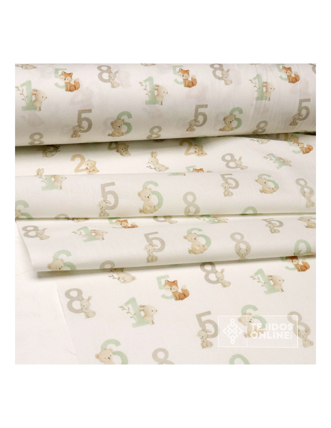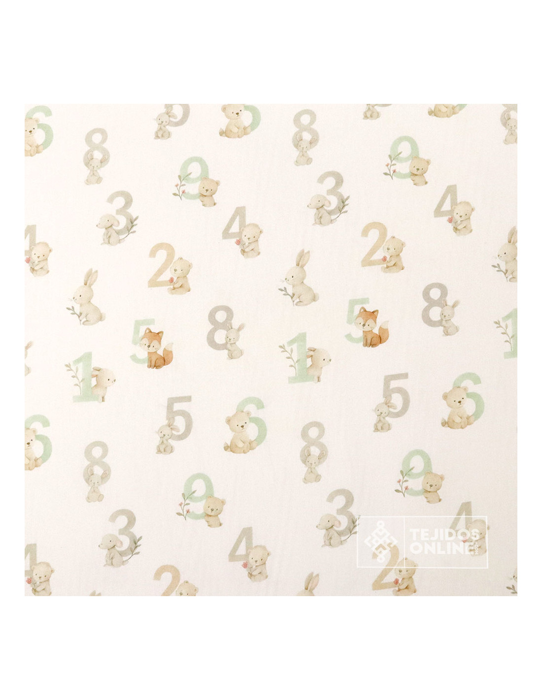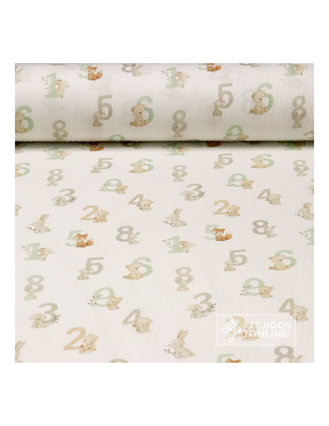 Tela 100% algodón con estampado de letras de abecedario acompañada de pequeños ositos tiernos sobre fondo blanco roto. Un diseño alegre e infantil que combina letras en tonos topo, y verde agua con animalitos como conejos, zorrito, osos etc. Este tejido es ideal para proyectos que buscan transmitir ternura, con una sensación de frescura y un estilo atemporal.
