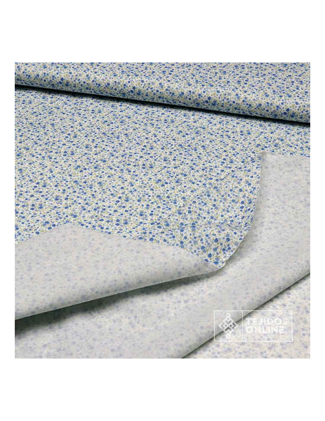 Tela 100% algodón con estampado floral mini de pequeñas flores repartidas de forma uniforme sobre fondo de color. Un diseño precioso disponible en una amplia variedad de combinaciones cromáticas como azul marino, mostaza, rosa, azul, verde agua, malva o fucsia, ideal para proyectos donde se busca un acabado fino, alegre y fácil de combinar y sobre todo con un toque infantil.