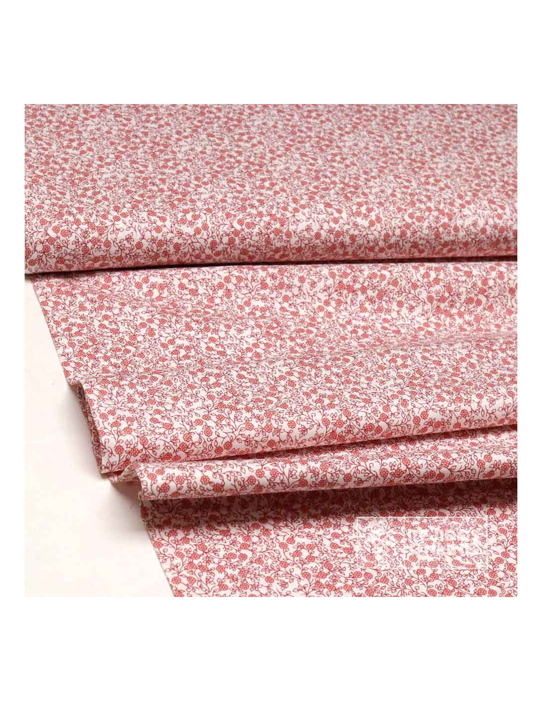 Tela 100% algodón con estampado floral de ramos dibujados en tono burdeos sobre fondo claro. Tela doble de ancha con 1,50 metros de ancho y un peso de 125 gr/m², es una tela suave, fresca y sin elasticidad. El tamaño aproximado del ramo es de 2 cm. Al tratarse de un estampado simétrico, es recomendable calcular los largos del proyecto para que el dibujo quede correctamente posicionado. Para rematar el interior de tus creaciones o hacer forros suaves y transpirables, puedes combinarla con esta batista lisa en múltiples colores.