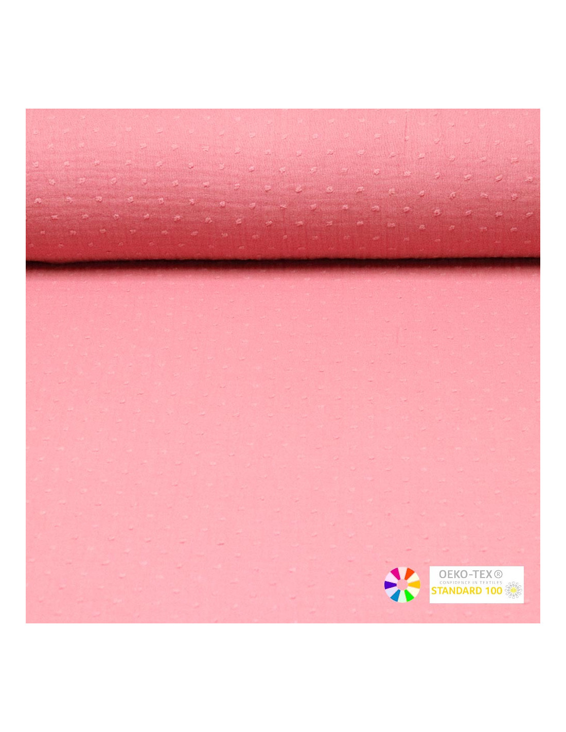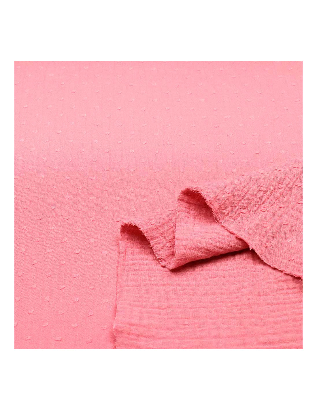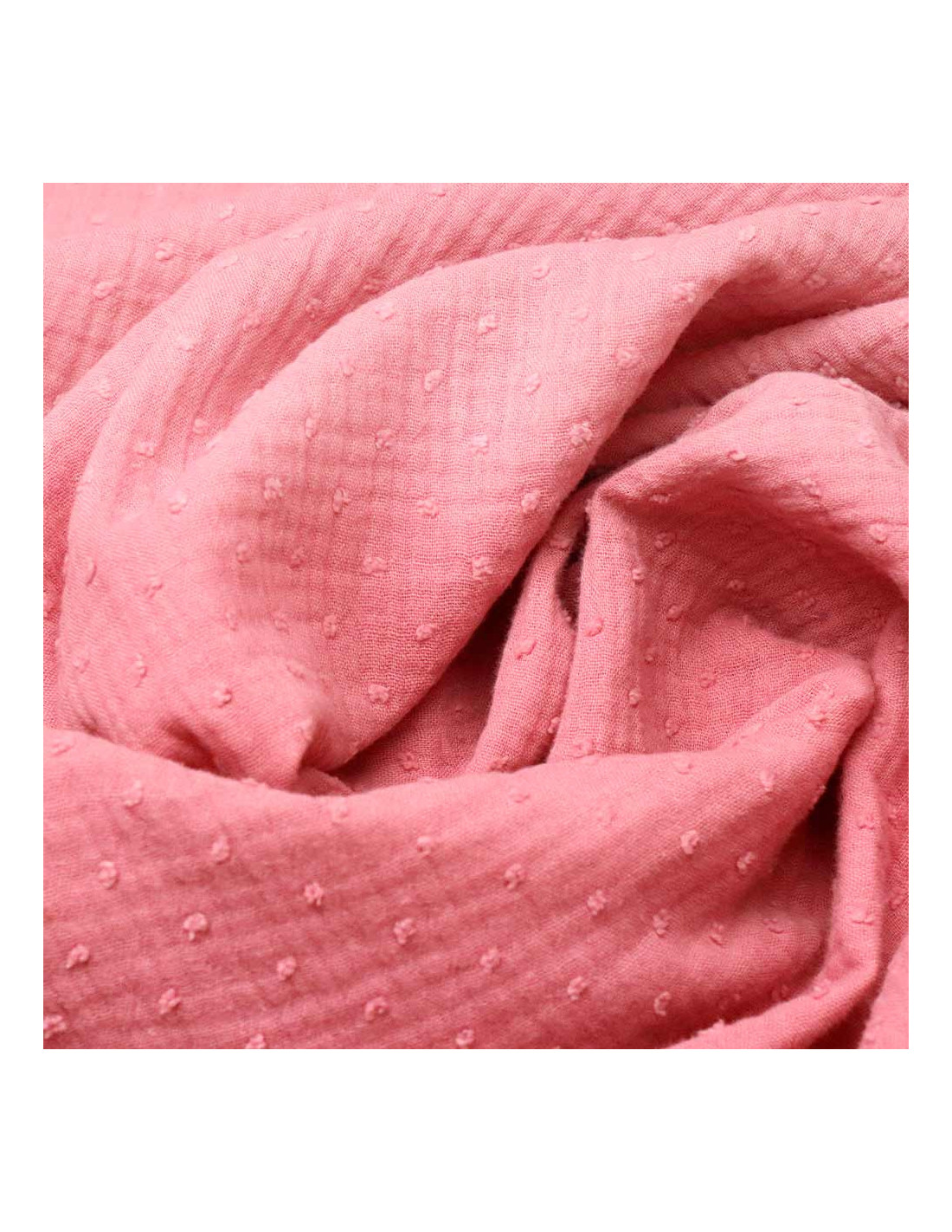 Las telas de Muselina de Plumetti son un tejido 100% algodón, doble de anchos, con cierta caída, cuerpo y agradable al contacto con la piel. Se caracterizan por ser un tejido muy suave y fresco destacando sus tramas onduladas. Sus plumetis del mismo color del tejido dan un toque distinto y a su vez una sensación de relieve al tacto.