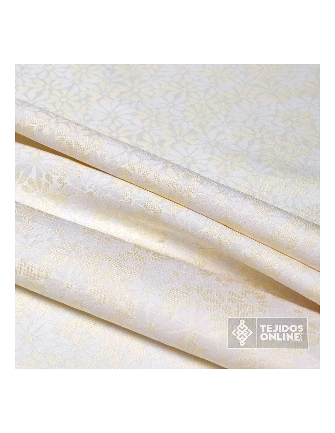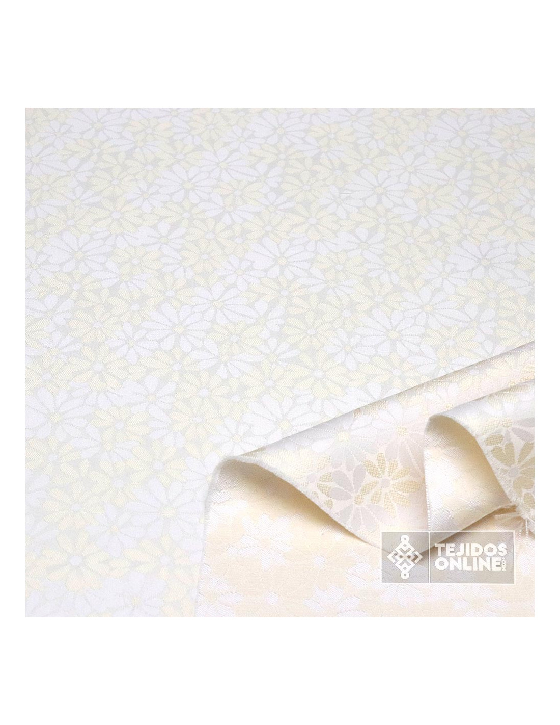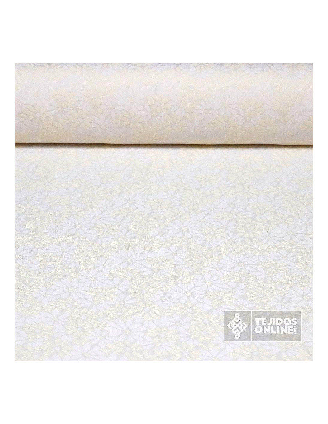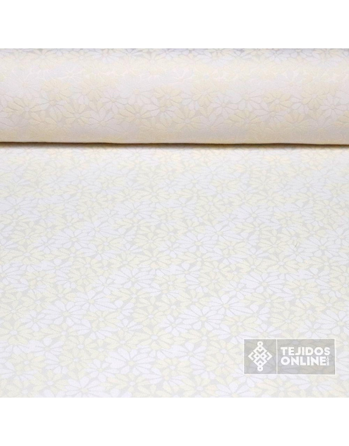 Jacquard Brocado Beige Flor Margarita