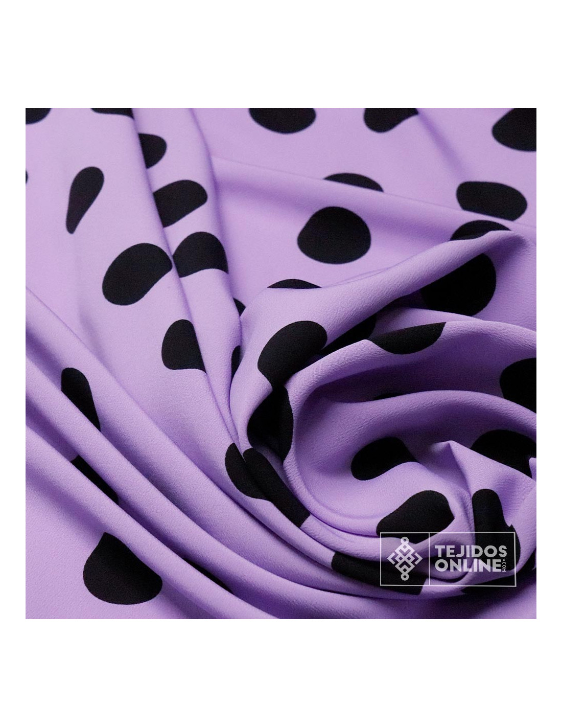Tela de Crespón Malva Lunar Negro Big, es un tejido con bastante caída, cierta finura, y mucho vuelo. Este tejido, en fondo color malva y lunares color negro estampados de formas asimétricas. Este tejido de tacto agradable y poco peso, es un tejido utilizado principalmente para prendas que busquen movimiento. A continuación te cuento sus principales usos.