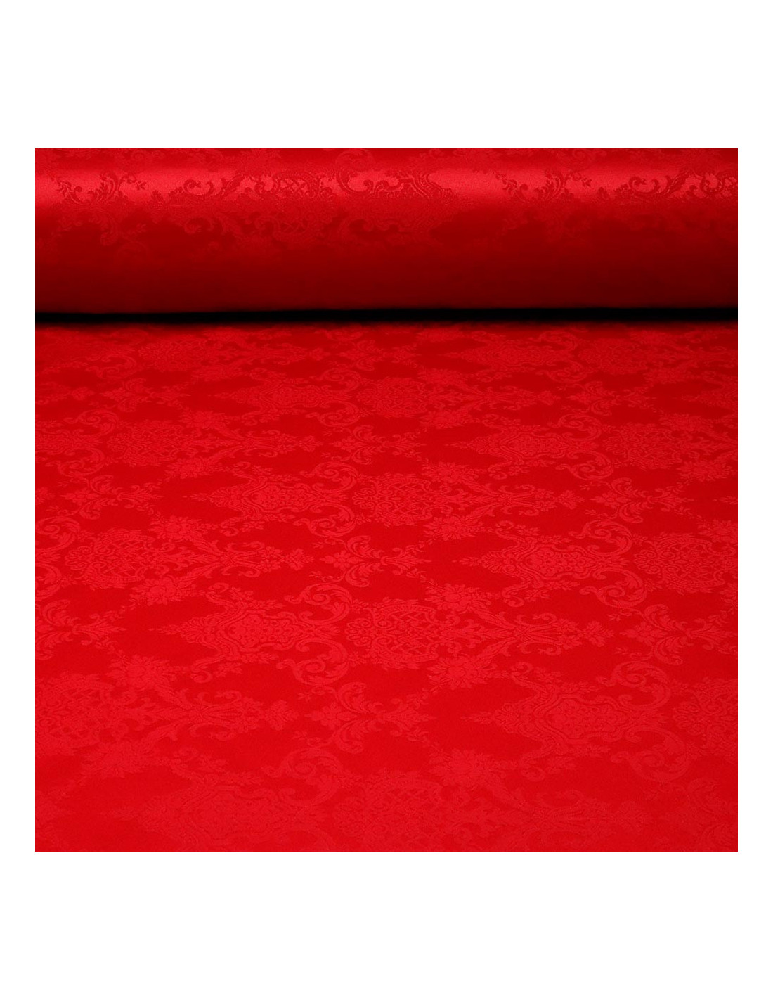 La tela de damasco rojo medallones es un tejido compuesto en poliéster que se caracteriza por su patrón de diseño en relieve gracias a sus brocados en forma de medallones. Este patrón se crea tejiendo hilos del mismo color juntos. Es un tejido doble de ancho que luce cuerpo y caída perfecta. Con una anchura de cortina de 2,80 metros, este tejido tiene un fondo en color rojo decorado por unos brocados en forma de medallón en el mismo tono.