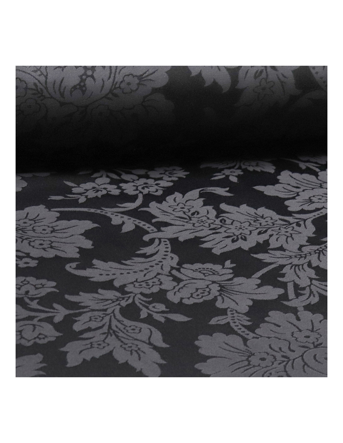 Tela de Damasco Negro Navarra es un tejido doble de ancho (2,80 metros), ideal para los que busquen una tela clásica y con elegancia. Se trata de un tejido con cierto cuerpo, cierto peso y buena caída. Con ancho de cortina, este precioso tejido de fondo en color negro y brocados en formas de flores en lo misma tonalidad. A la hora de comprar damasco, siempre es muy importante fijarse y apreciar la dirección del dibujo, para que el proyecto quede correctamente posicionado. A continuación te explicamos como debes de solicitar esta tela de damasco negro.