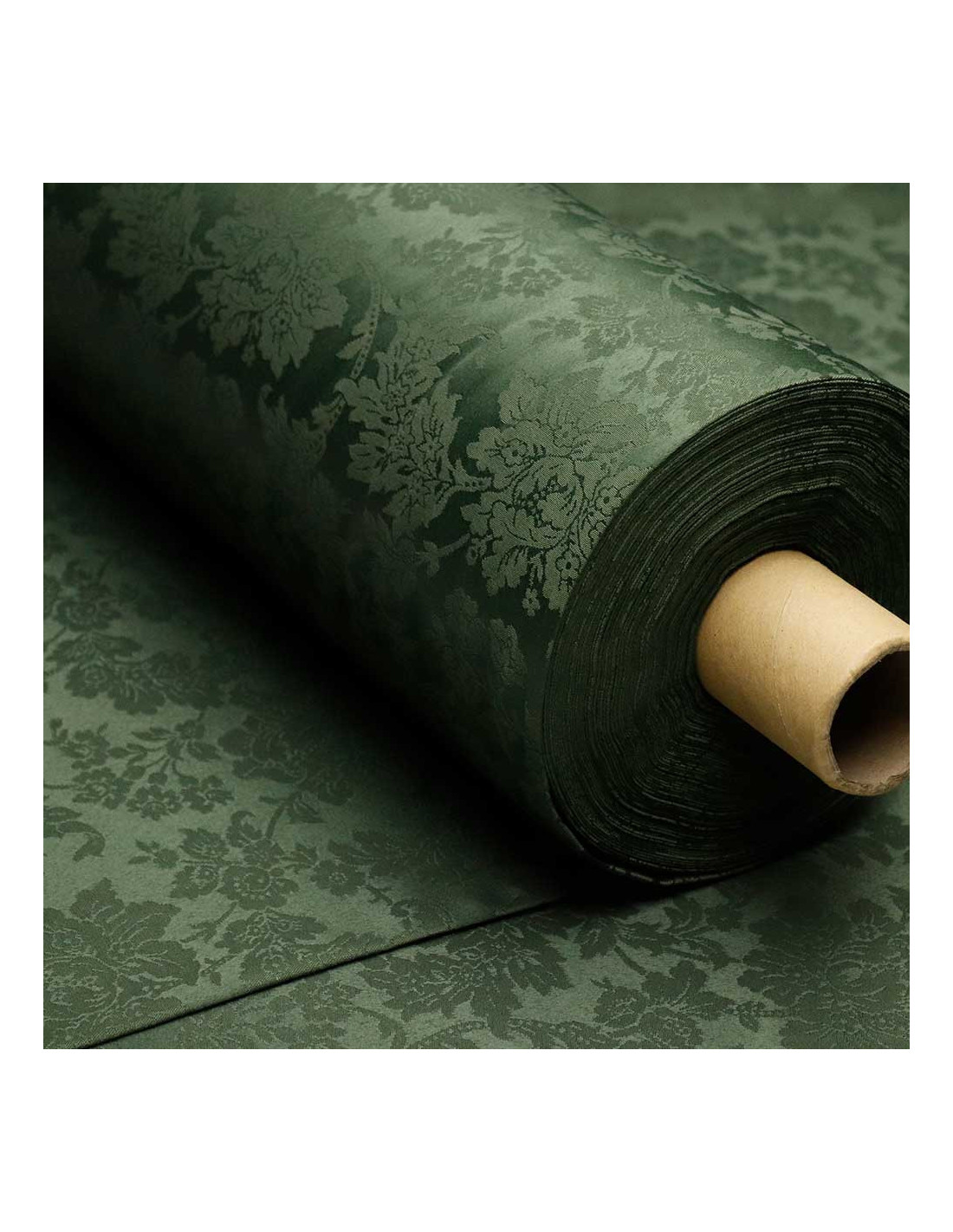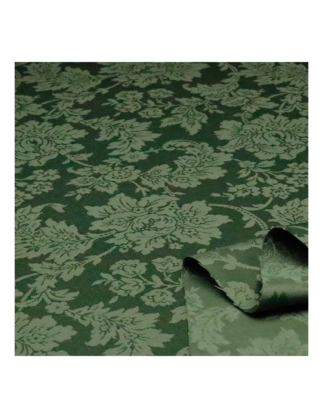 Tela de Damasco Verde Toledo es un tejido doble de ancho (2,80 metros), ideal para los que busquen una tela clásica y con elegancia. Se trata de un tejido con cierto cuerpo, cierto peso y buena caída. Con ancho de cortina, este precioso tejido de fondo en color verde y brocados en formas de flores de un tamaño pequeño en lo misma tonalidad. A la hora de comprar damasco, siempre es muy importante fijarse y apreciar la dirección del dibujo, para que el proyecto quede correctamente posicionado. A continuación te explicamos como debes de solicitar esta tela de damasco verde.