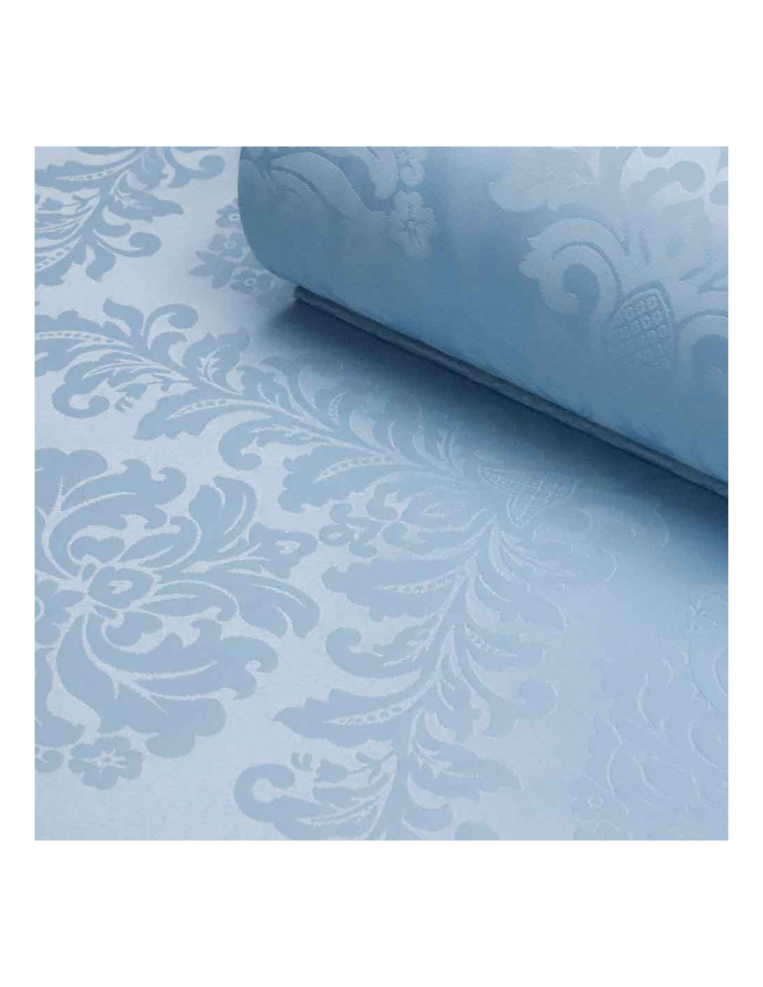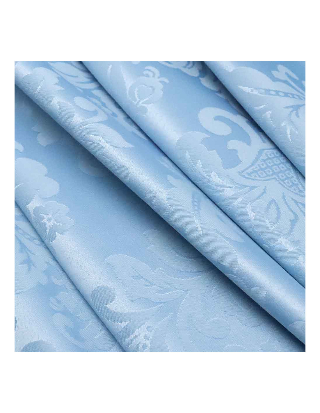 Tela de Damasco Celeste Medallón es un tejido doble de ancho (2,80 metros), ideal para los que busquen una tela clásica y con elegancia. Se trata de un tejido con cuerpo, cierto peso y buena caída. Con ancho de cortina , este precioso tejido de fondo en celeste intenso y brocados en lo misma tonalidad con formas de un gran medallón. A la hora de comprar damasco, siempre es muy importante fijarse y apreciar la dirección del dibujo, para que el proyecto quede correctamente posicionado. A continuación te explicamos como debes de solicitar esta tela de damasco celeste.