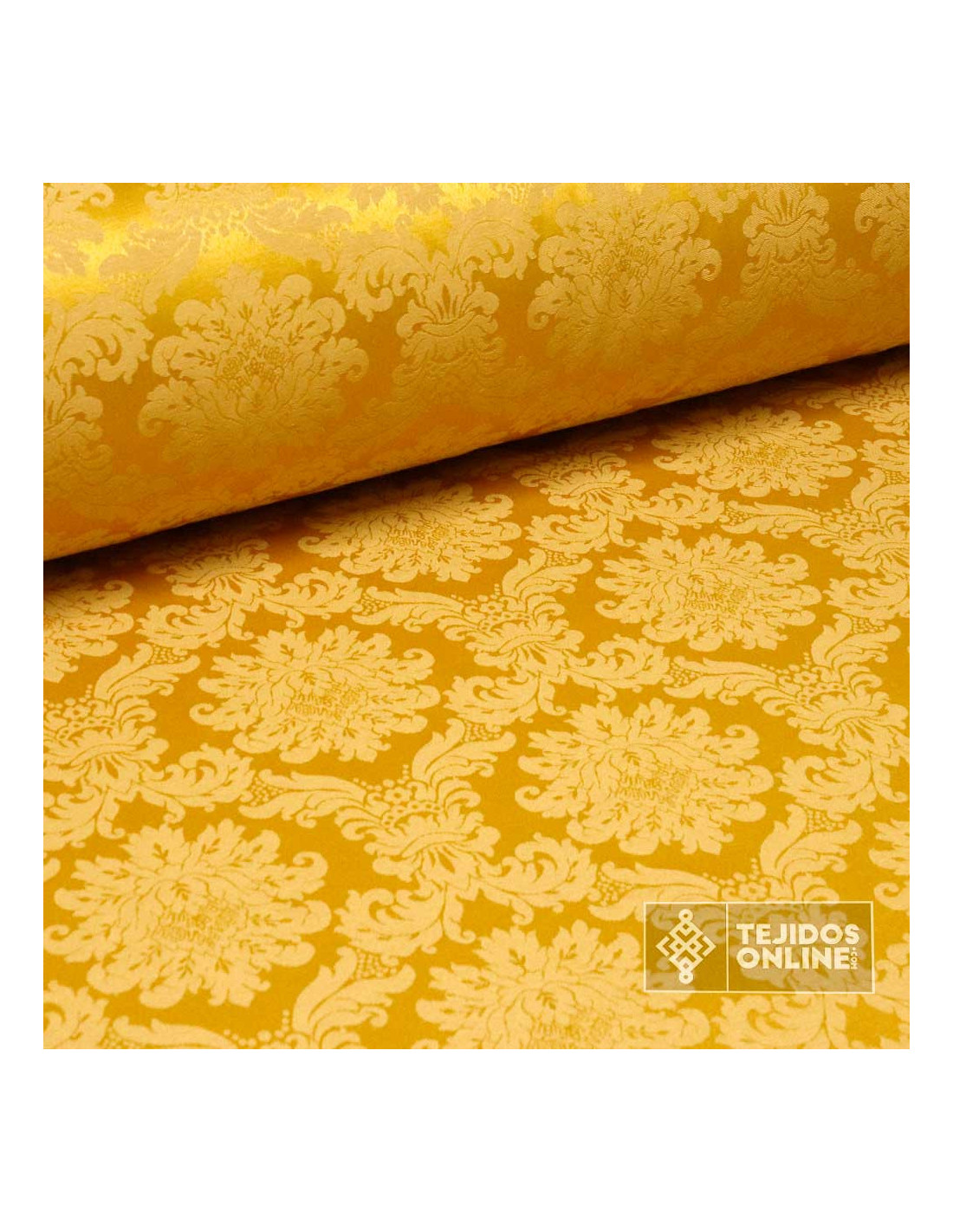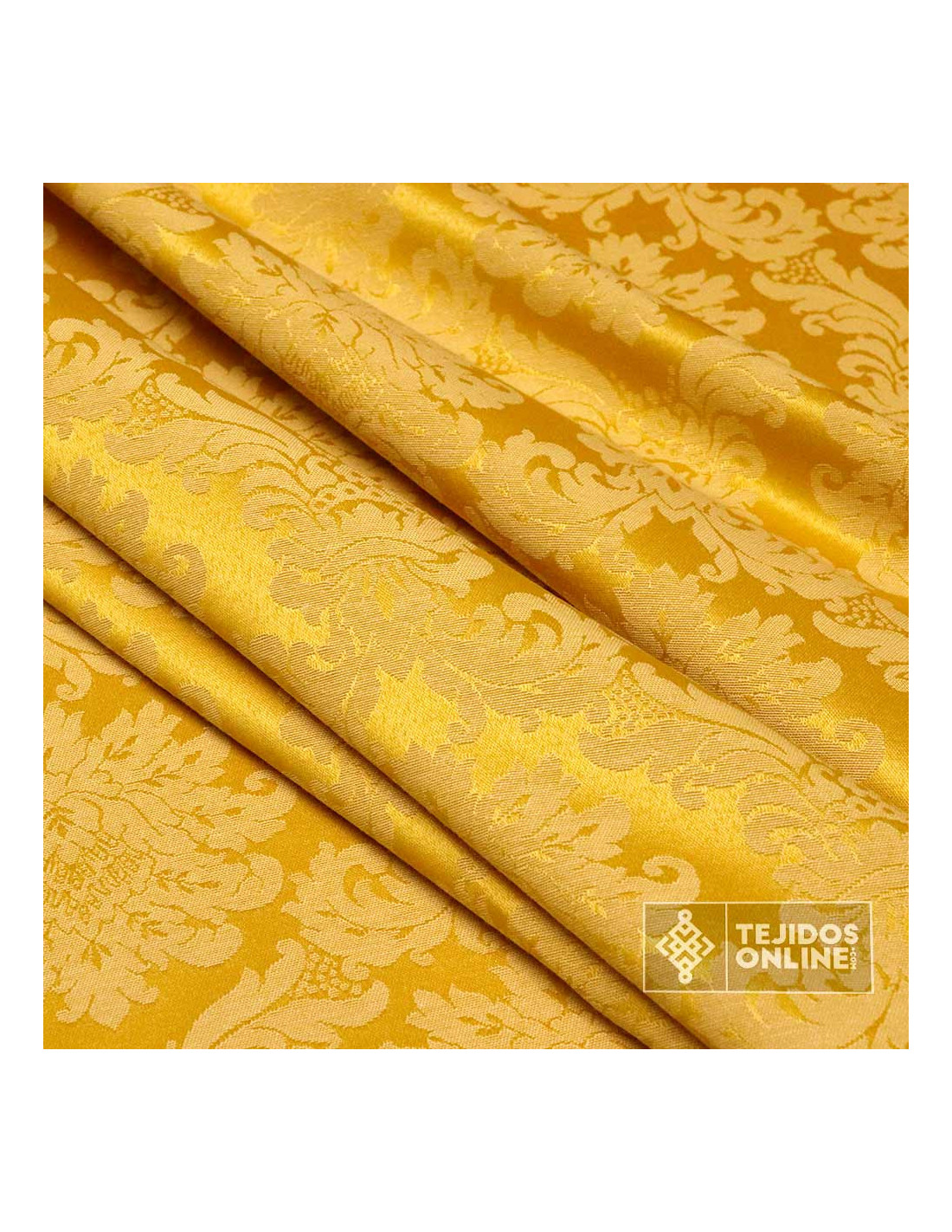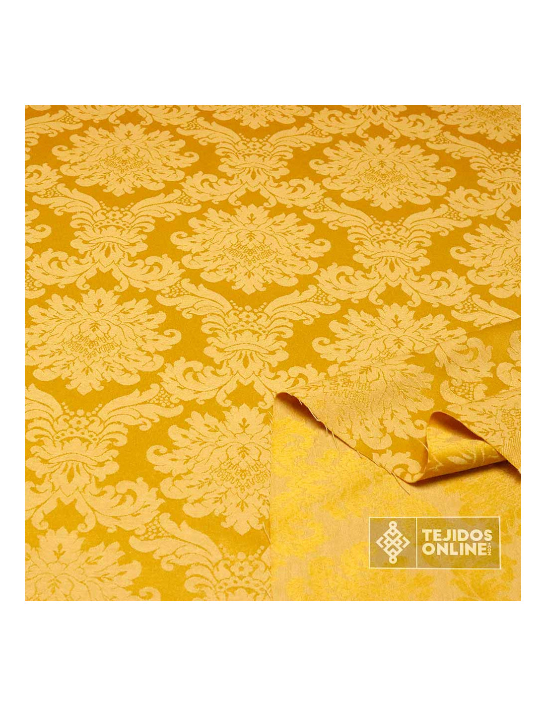 Tela con buen cuerpo, buena caída y gran variedad de usos. Tela Lavable y no se arruga, ni encoge, con un dibujo fino y elegante. Precio por su anchura y calidad es muy recomendable, con colorido extenso y bonito, y no pierden intensidad. Es un tejido de damasco como el que puedes ver en cualquier iglesia, balconera y tapizados religiosos. Recuerda que la saturación de tu pantalla puede variar la tonalidad del tejido.