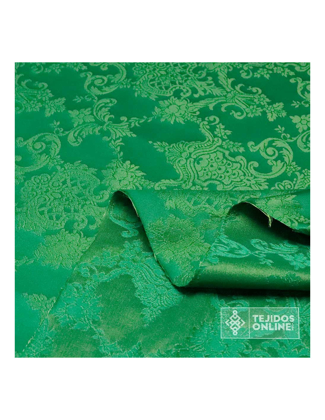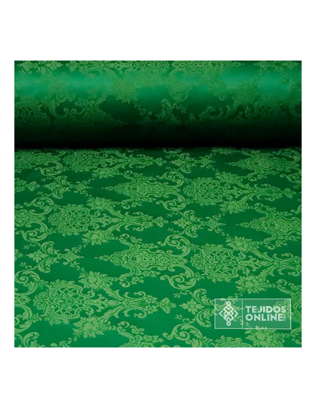 Tela de Damasco Verde Medallones | Telas Cofrades