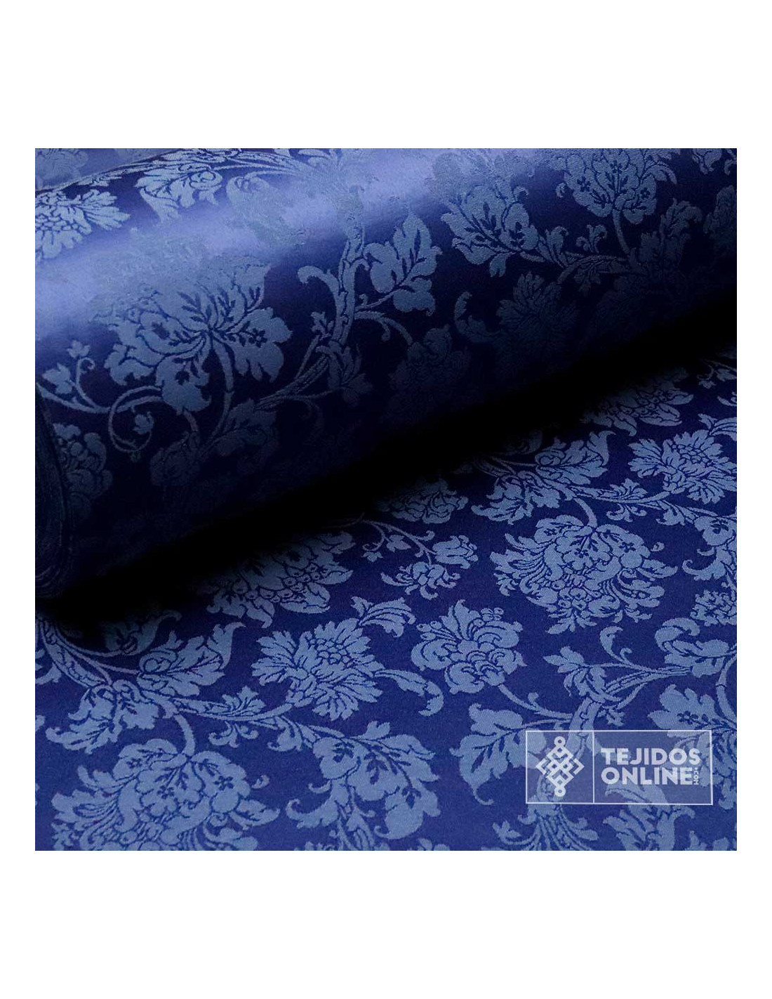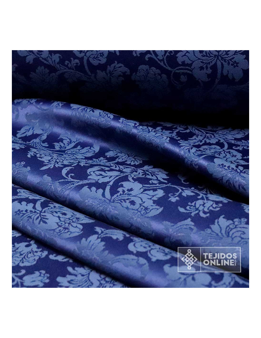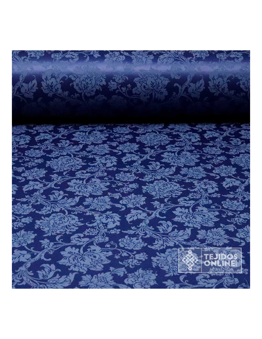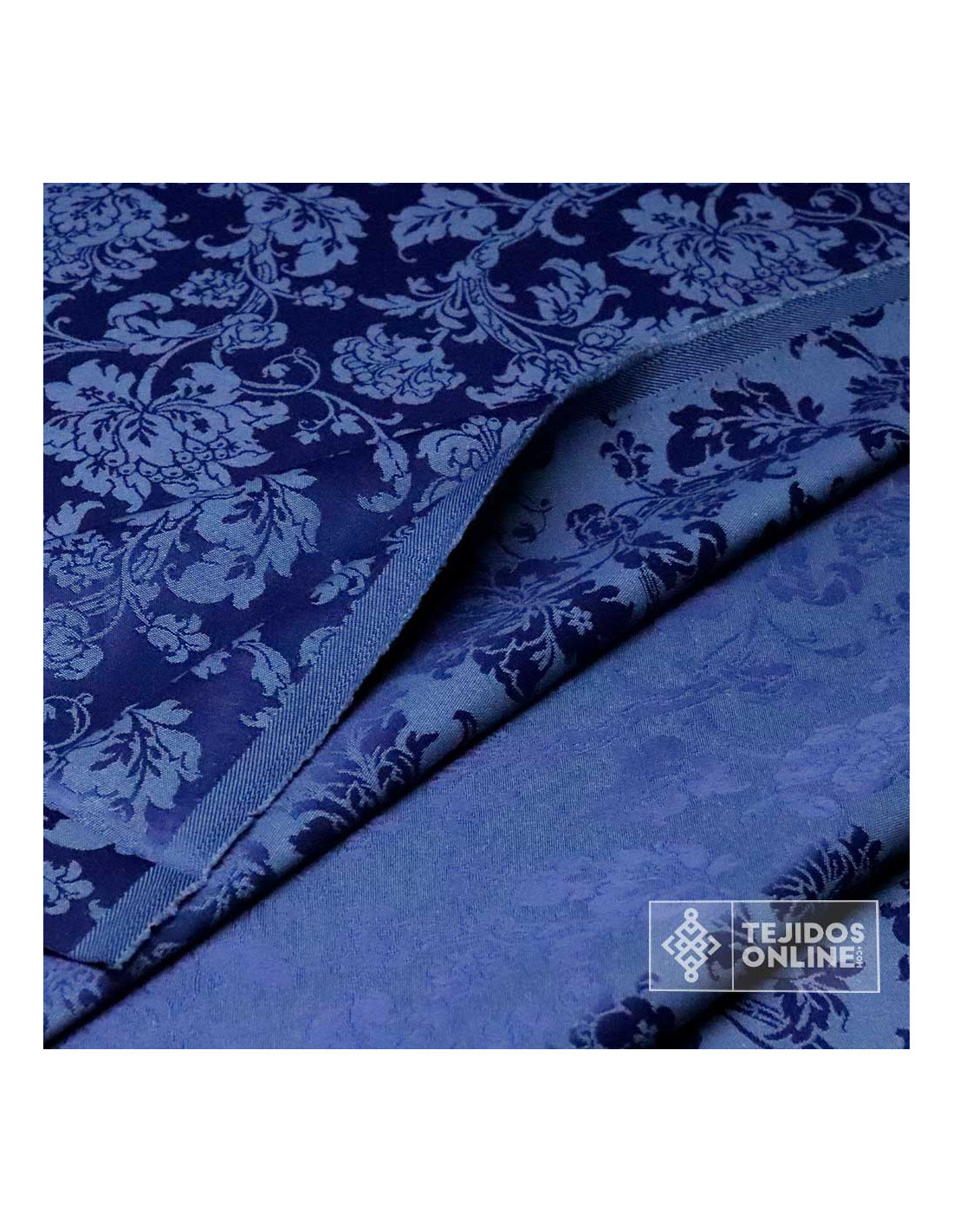 Este tejido damasco azul presenta un dibujo floral clásico distribuido de forma continua y equilibrada, permitiendo su corte en cualquier dirección sin afectar la posición del diseño. Ideal para confecciones cofrades, decoración tradicional o proyectos de hogar con un toque elegante.