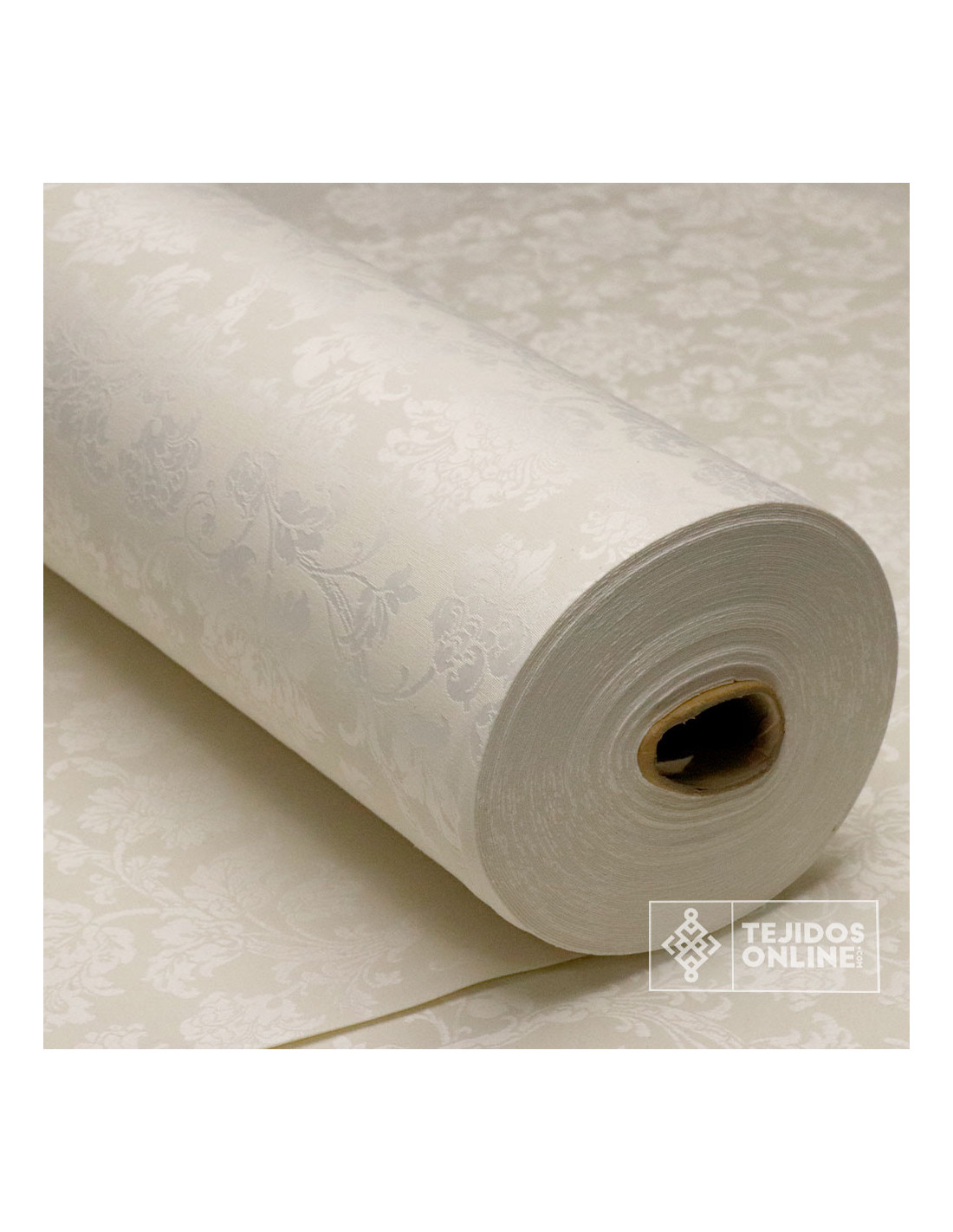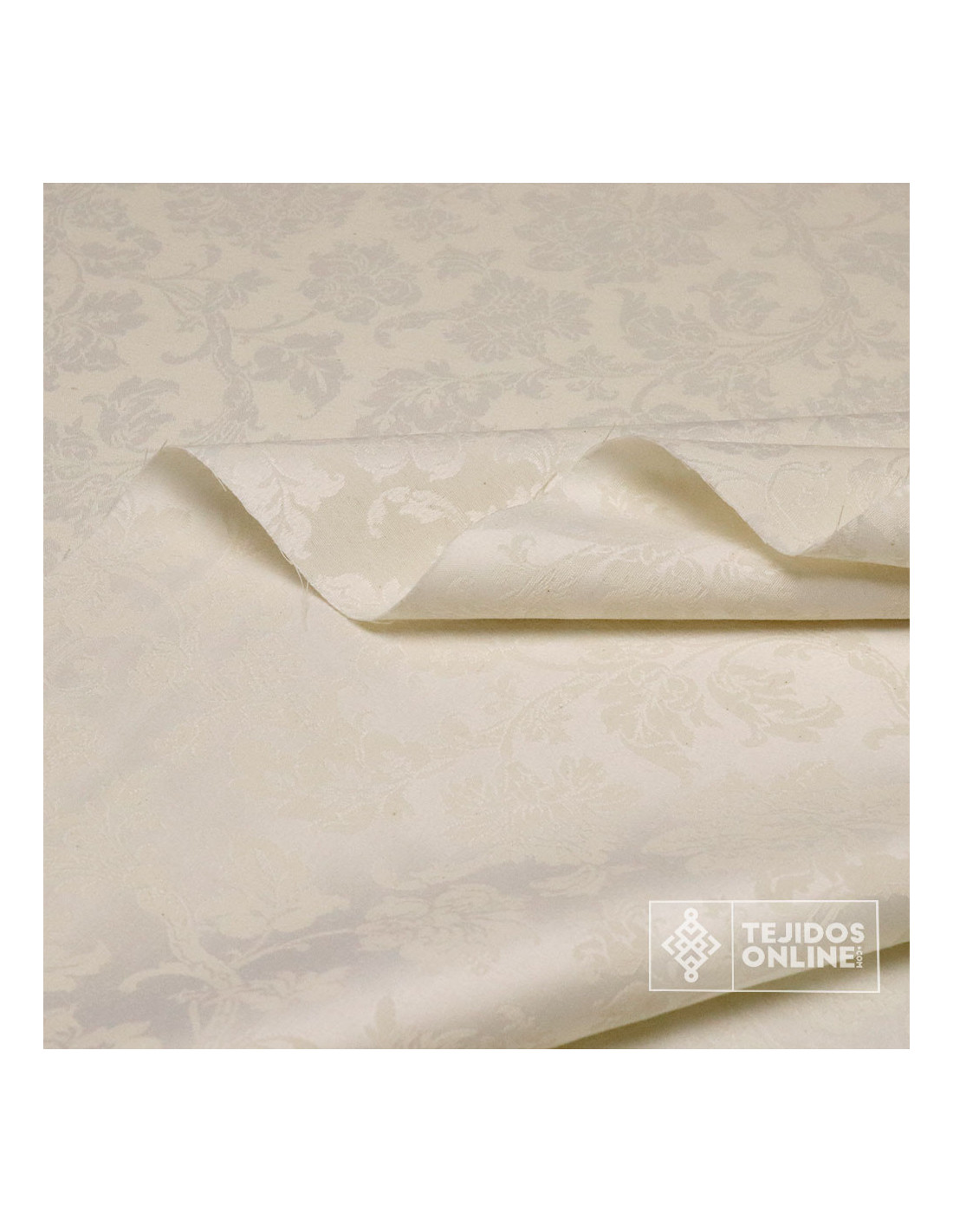 Este tejido damasco blanco roto presenta un dibujo floral clásico distribuido de forma continua y equilibrada, permitiendo su corte en cualquier dirección sin afectar la posición del diseño. Ideal para confecciones cofrades, decoración tradicional o proyectos de hogar con un toque elegante.