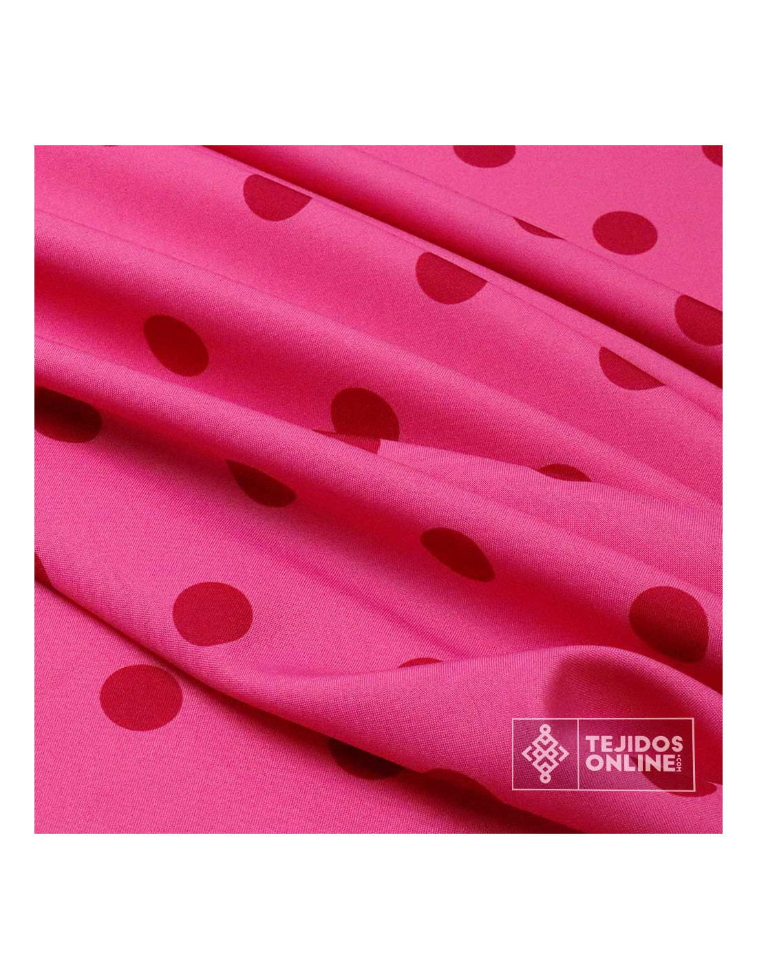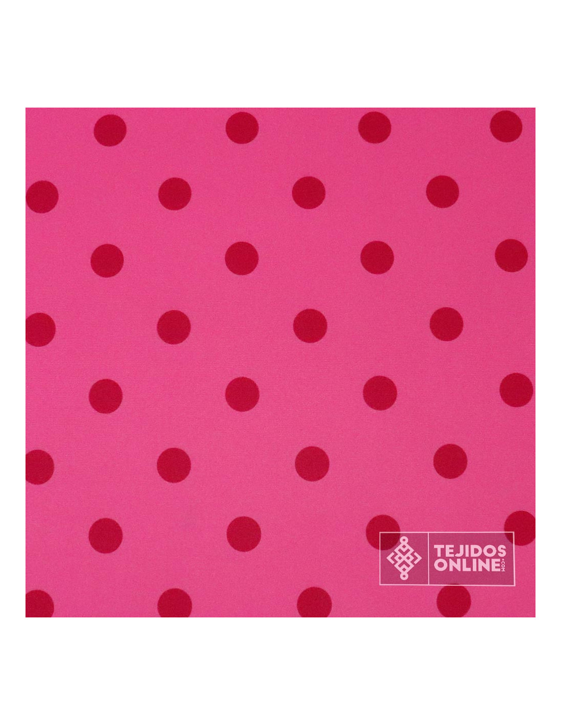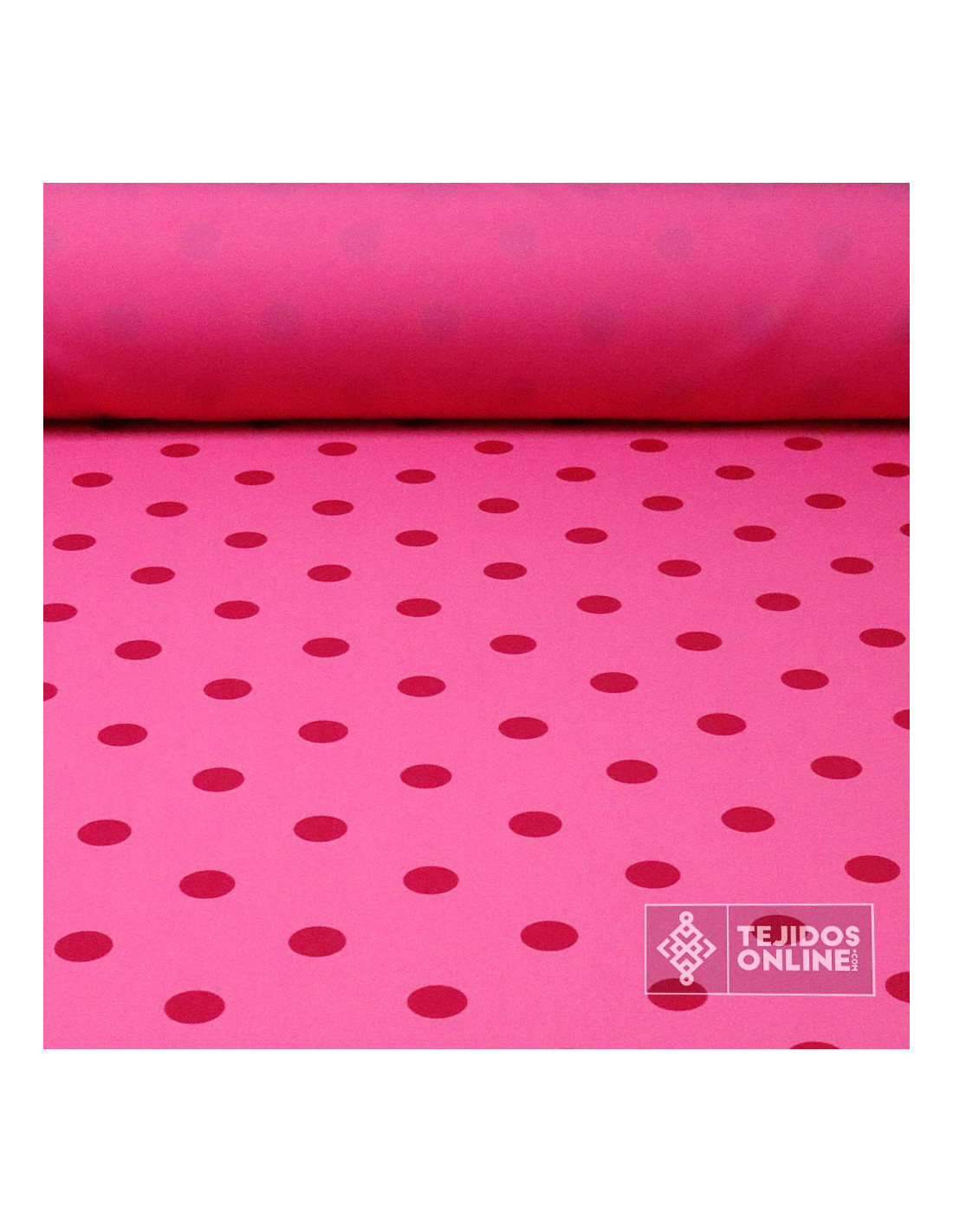 Nuestro Tejido de fondo fucsia con estampaciones de lunares fucsia oscuro de un tamaño de 2.8 cm de diámetro, estampados de forma simétrica, es una tela original y de nueva colección. Así que ponte a crear por que este tejido es ideal para cualquier proyecto.