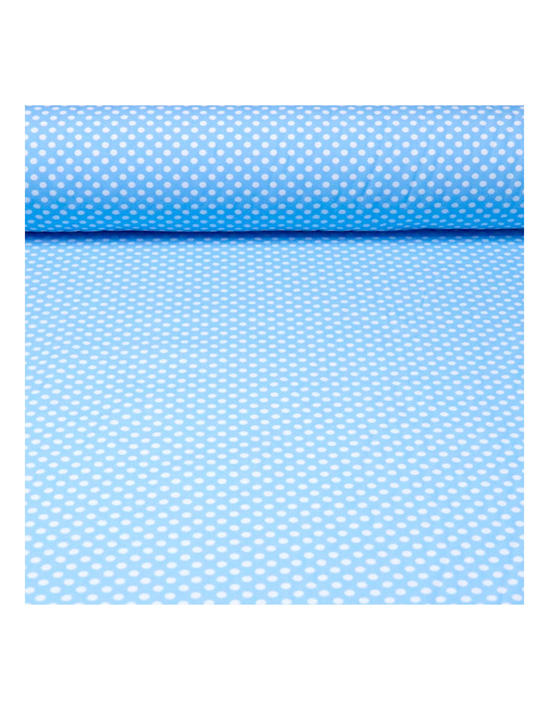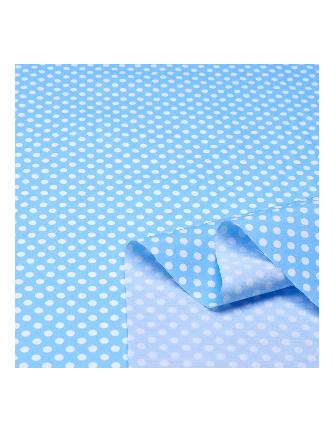 Tela de popelín celeste lunar blanco en tamaño lenteja, ideal para la moda flamenca. Si estás buscando telas de flamenca de gran calidad al mejor precio para crear impresionantes trajes de baile, ¡no busques más!. El popelín es la opción perfecta para ti, y nuestro popelín celeste lunar blanco unión es una de las mejores opciones disponibles en el mercado y como siempre a la moda. La tela de popelín es un tejido teñido por lo cual siempre es recomendable un lavado como te contamos aquí