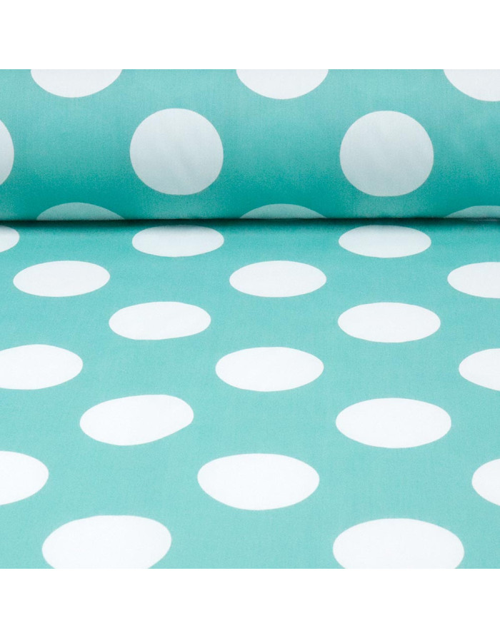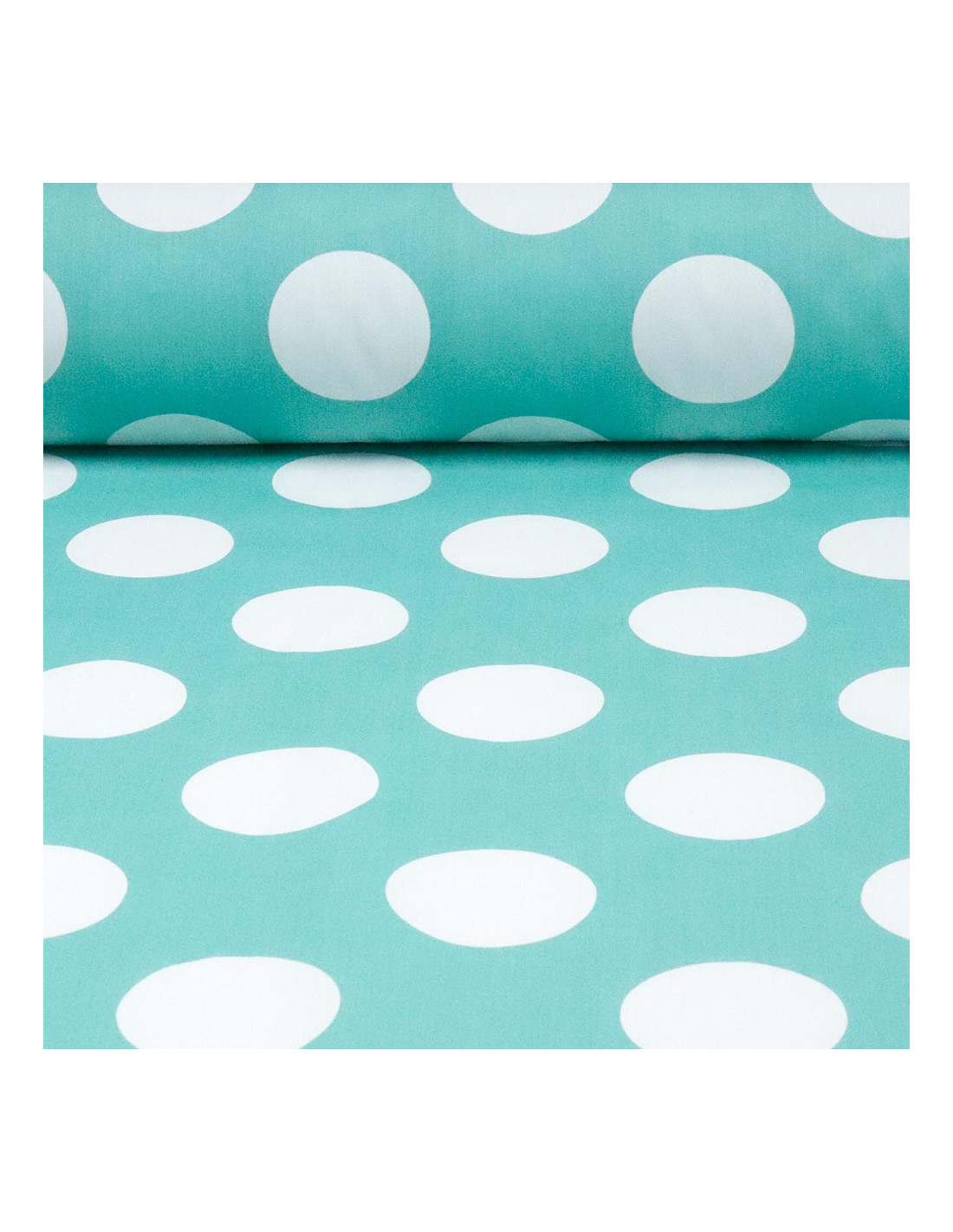 Tela Blanca Lunar Verde Agua Galleta | Telas de Flamenca