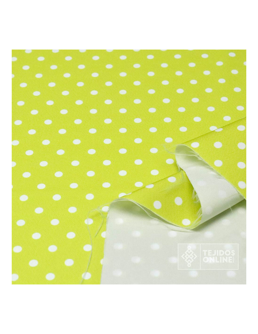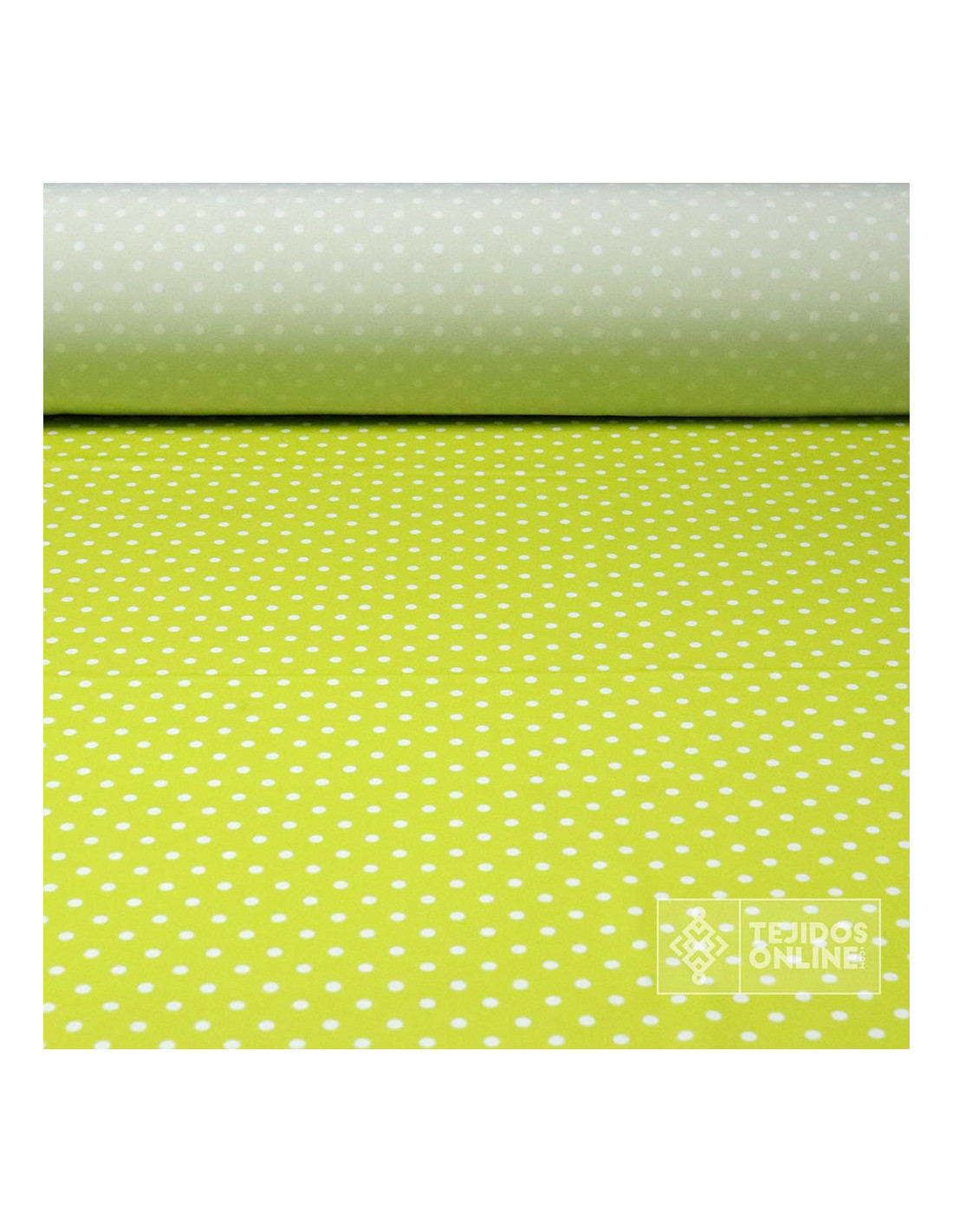 Tela Verde Manzana Lunar Blanco Lenteja