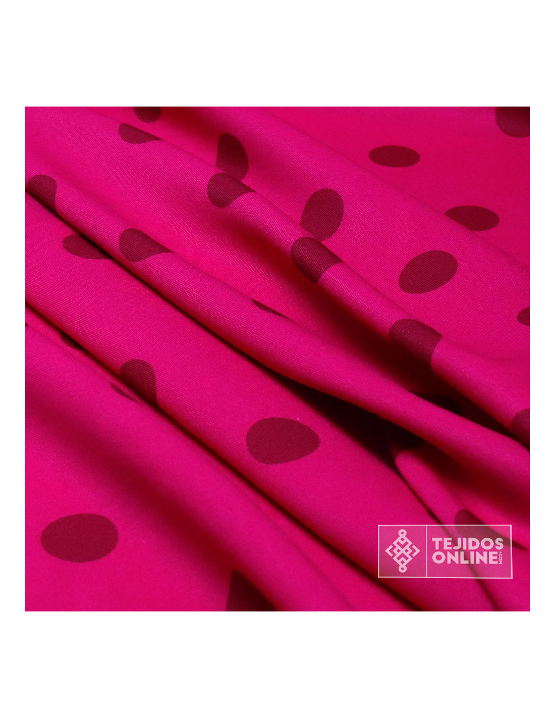 Tela fucsia Lunar grosella es un tejido de conocido como tela de stretch o también conocida como tela de plana, con un ancho de 1.50 metros se caracteriza por ser un tejido con caída, vuelo y cierto cuerpo siendo así una tela fácil de coser ya que no ofrece resistencia. Tejido que no necesita planchado ni se arruga siendo un tejido con gran movimiento y doble de ancho.