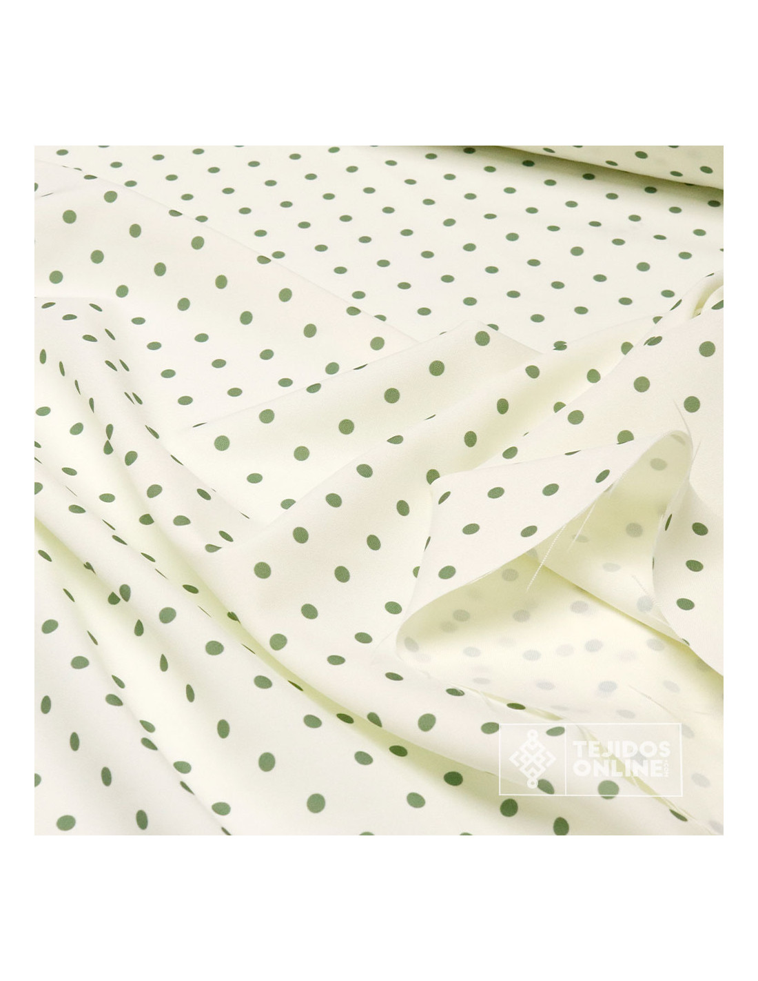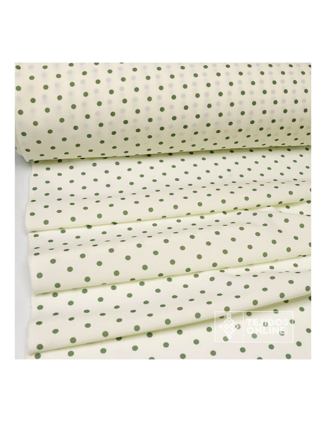 Tela Blanco Roto lunar Verde Suculenta Lenteja es un tejido de conocido como tela de stretch o también conocida como tela de plana, con un ancho de 1.50 metros se caracteriza por ser un tejido con caída, cierta elasticidad gracias a su composición, vuelo y cierto cuerpo siendo así una tela fácil de coser ya que no ofrece resistencia. Tejido que no necesita planchado ni se arruga siendo un tejido con gran movimiento y doble de ancho.