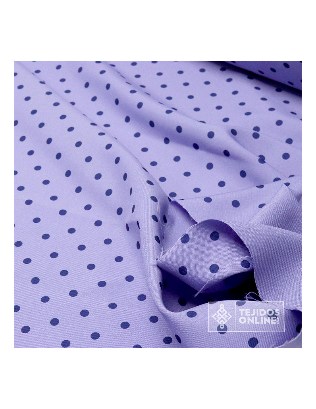 Tela Lavanda con Lunar Azul Marino
