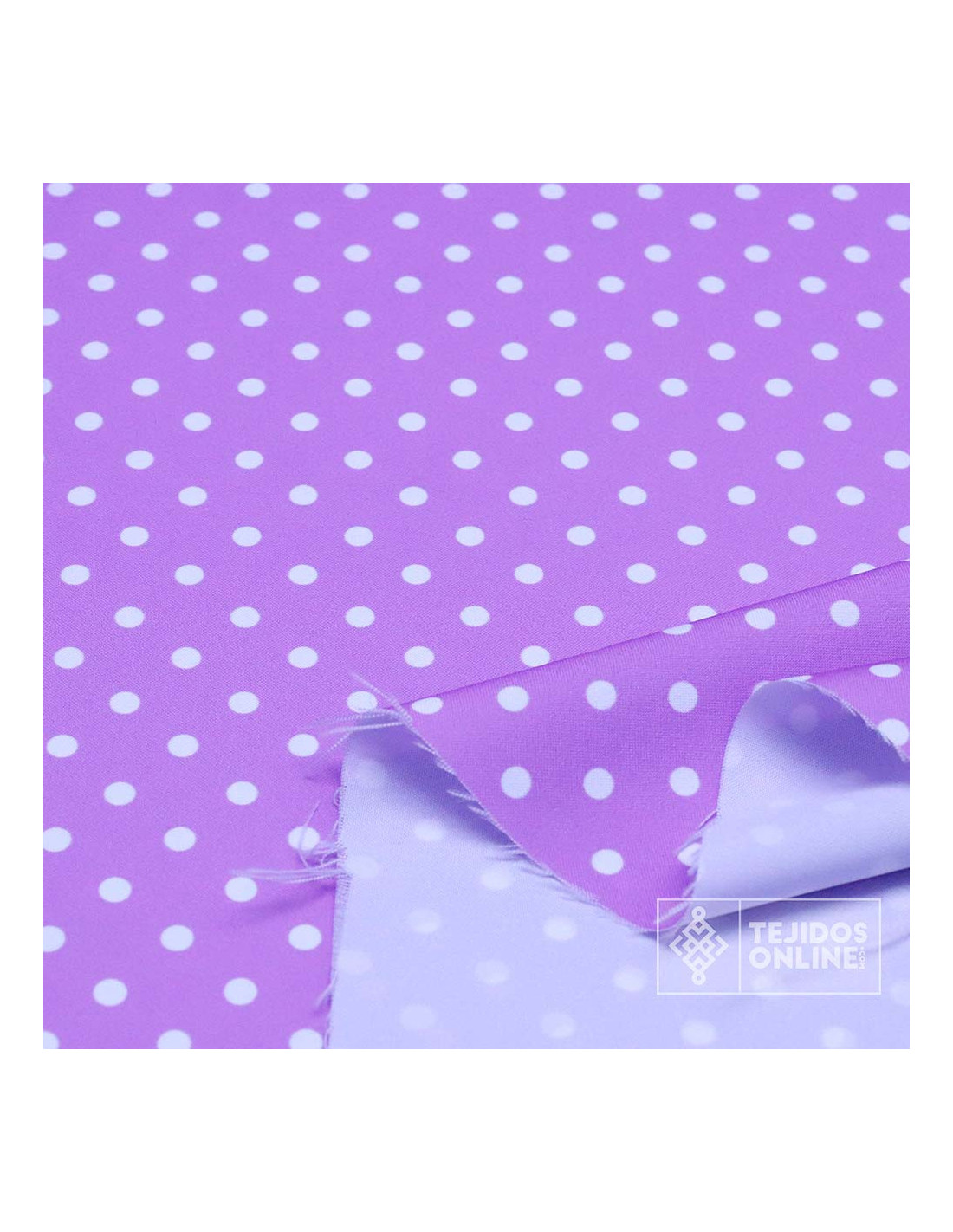 Nuestro Tejido de fondo color malva y con estampaciones de lunares de color blanco de un tamaño de 0.7 cm de diámetro con estampados de forma simétrica. Esta tela de flamenca es compatible y perfectamente combinable con cualquiera de los otros tamaños de fondo malva de lunares blancos. Así que ponte a crear por que este tejido es ideal para cualquier proyecto.