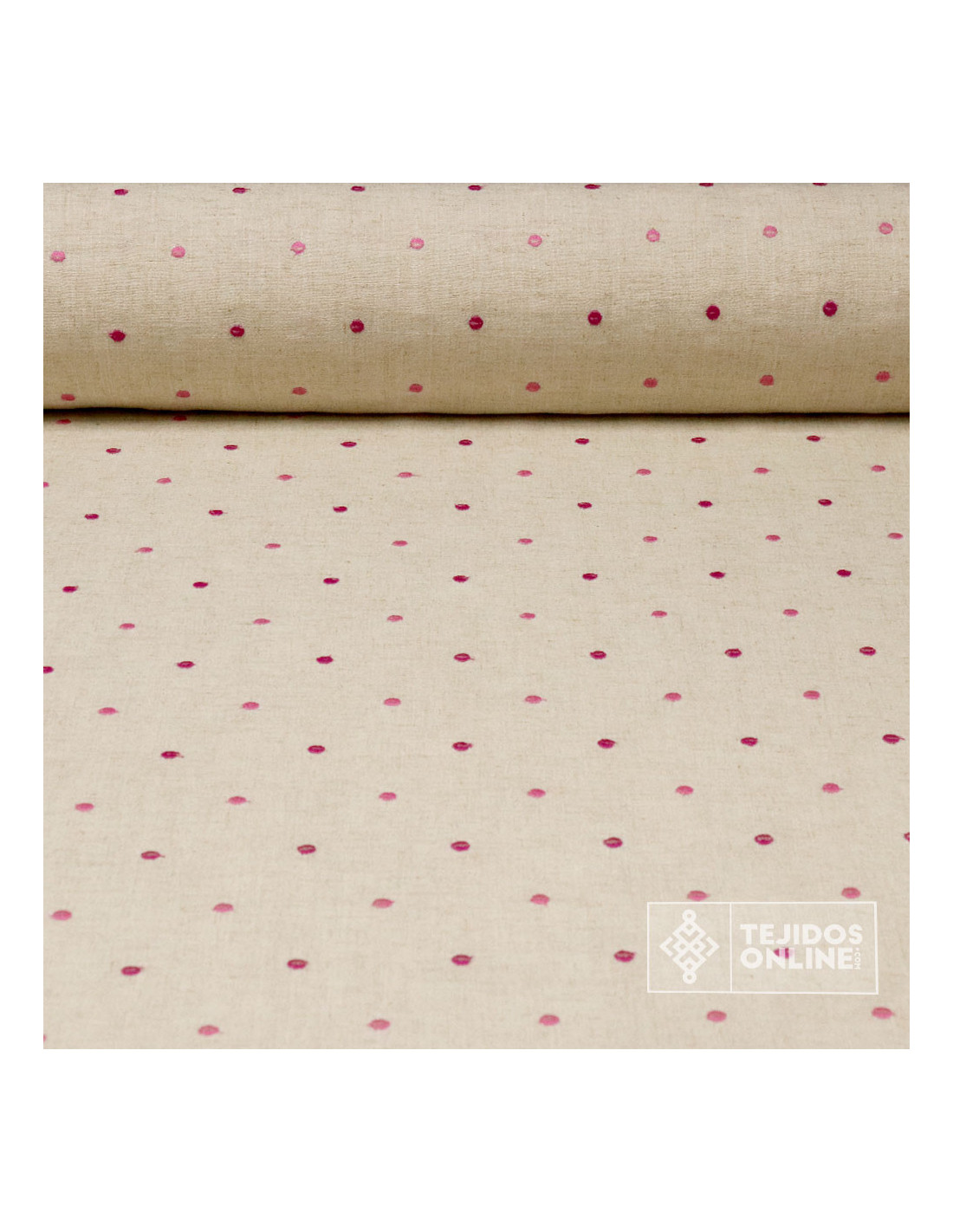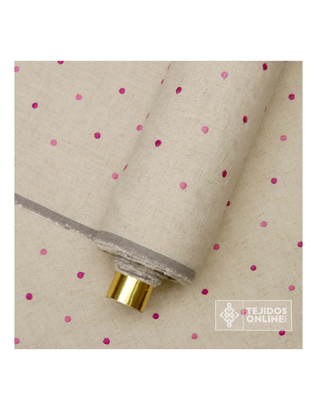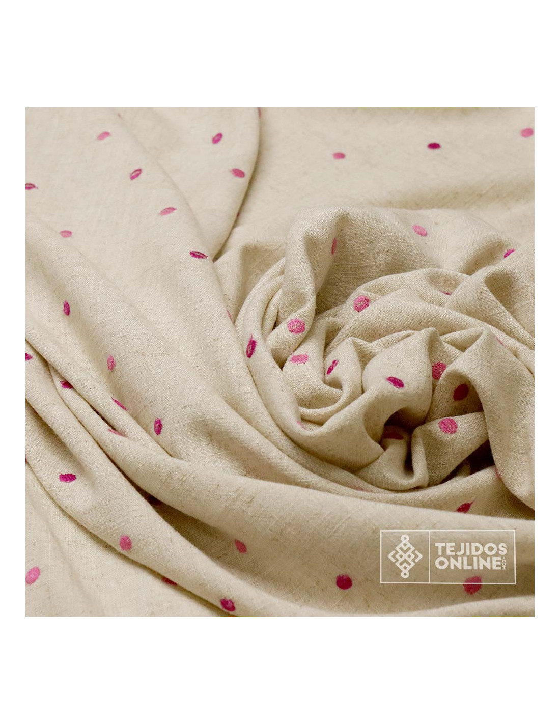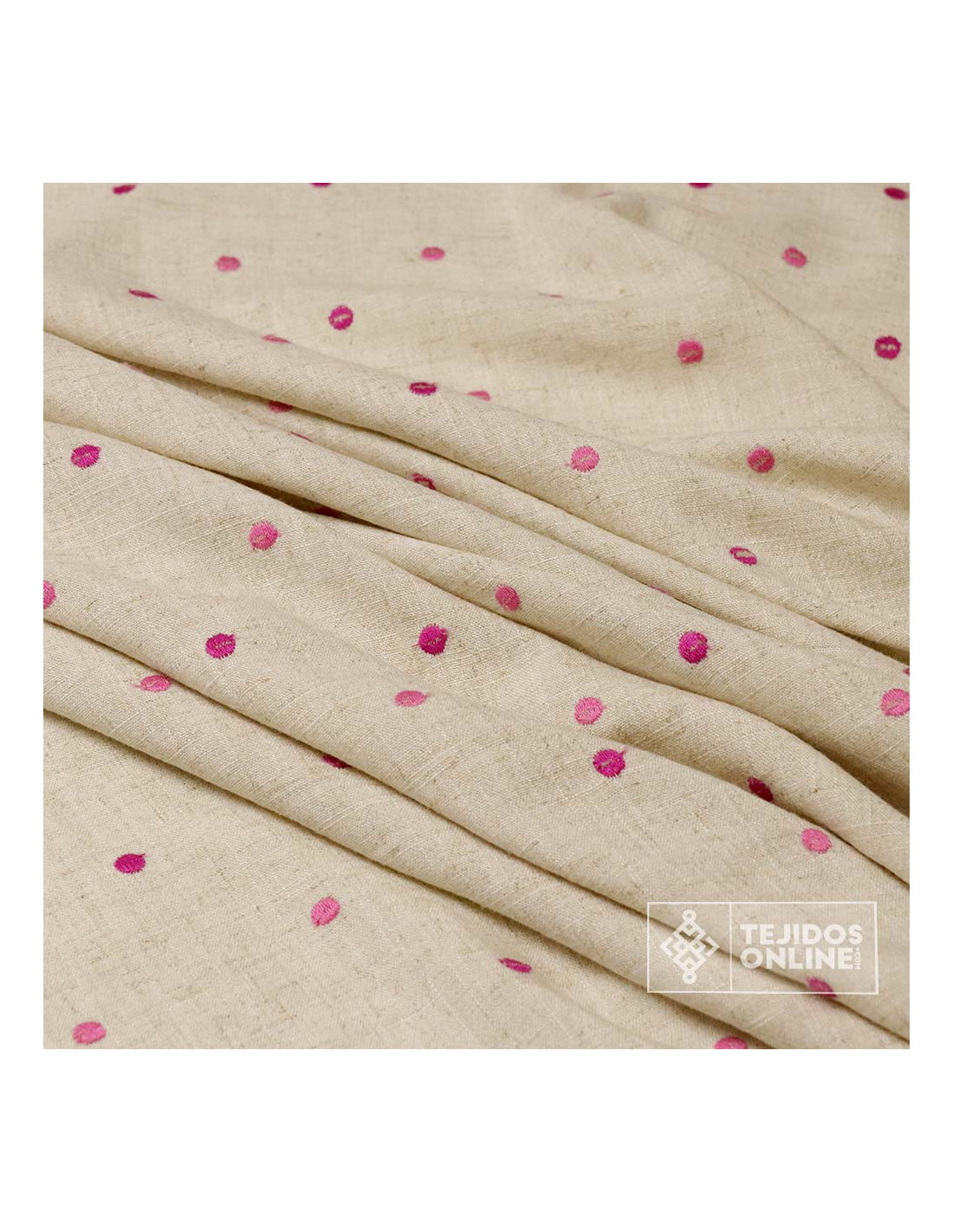 Descubre nuestra novedosa Tela Lino Lunar Buganvilia Borado es un tejido compuesto idael para cualquier proyecto de moda o moda infantil. Este lino es un tejido compuesto en poliester y lino. Esta tela es un tejido suave que presenta unos preciosos lunares bordados en color buganvilia sobre un fondo color camel siendo una tela de tacto super agradable y fresco. Esta tela de lino es un tejido doble de ancho, lo que lo hace perfecto para gran variedad de proyectos especialmente en la moda y las confecciones infantiles.