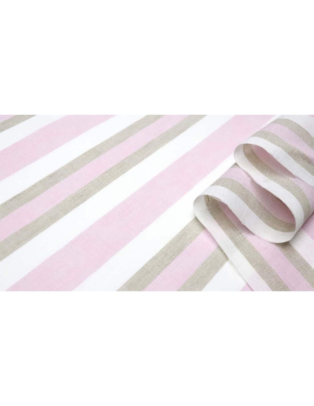 Tela de Lino Rayas Rosa