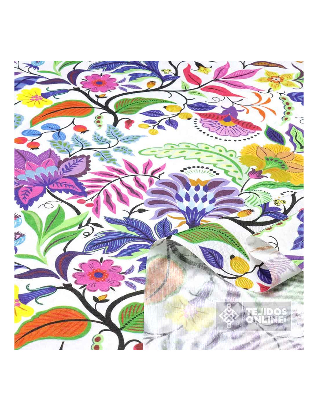 Descubre nuestra Loneta Flores Flor Vida de diferentes tonalidades y diferentes tamaños sobre un fondo blanco, con solo mirar causa una sensación de ternura y ambiente primaveral único, así que vamos a contarte un poco más sobre esta tela de loneta. La tela de Loneta estampada de flores es un tejido con cierto cuerpo y a su vez cierta finura que la hacen única en su clase. Esta loneta estampada es un tejido con estampación asimétrica, es decir, tela que podemos jugar con su dirección tanto en alto como ancho, ya que sus mariposas se aprecian bien de forma horizontal como vertical.
