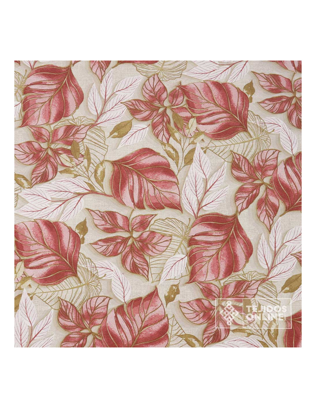 Esta tela de loneta estampada es un tejido de cierta grosura al tacto siendo una tela resistente al desgaste, doble de ancha con una anchura de 2.80 metros. Esta tela está compuesta de una mezcla de algodón y poliéster. Se diferencia por unas flores maravillosas en tonalidades burdeos sobre un fondo textuarizado en fondo beige.