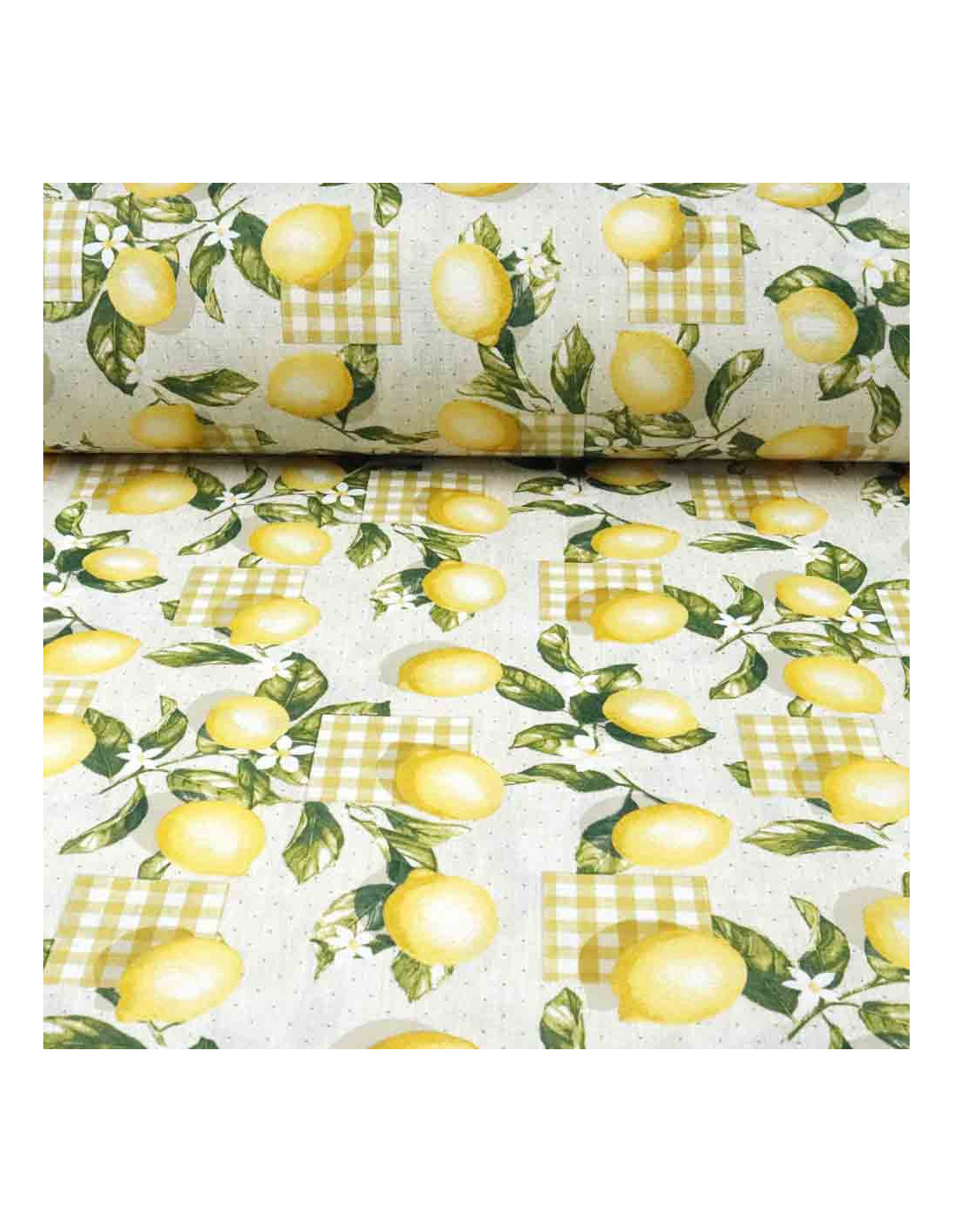 La tela de loneta limón vichy cocina podemos apreciar que es un tejido con cuerpo con cierta grosura y resistente. Tejido fondo beige con estampaciones de limones hojas cuadros de vichy y pequeños lunares. A tener en cuenta, tejido con estampación asimétrica, es decir, tejido que podemos colocar en varias direcciones. Tejido utilizado para todo tipos de confecciones como; proyectos de manualidades para cortinas, mantelería, tapicería, etc.