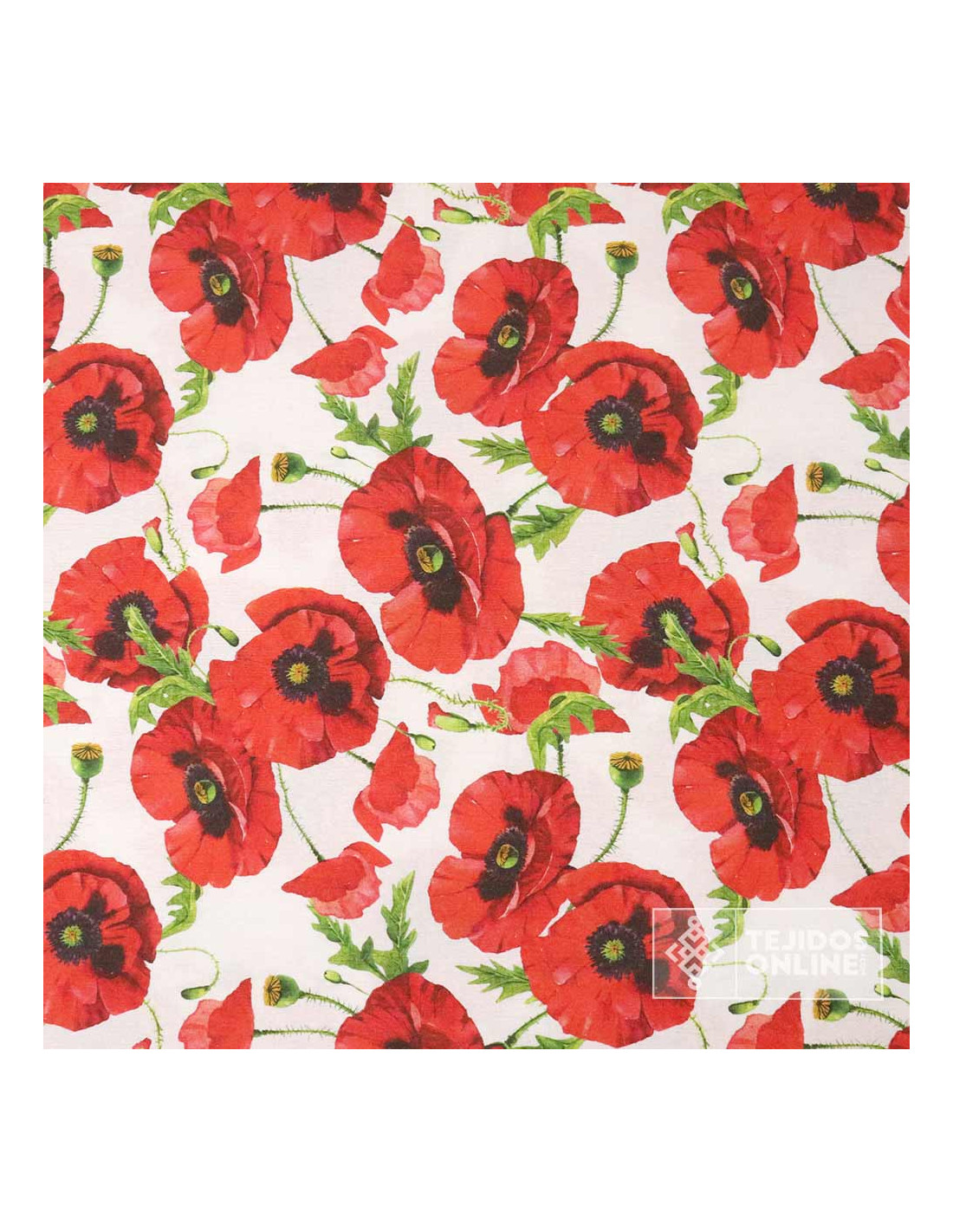 Esta tela de amapolas es una opción ideal para quienes buscan frescura y un diseño floral vibrante. ¡Hazte con ella y dale un toque único a tu espacio o a tu próxima costura!