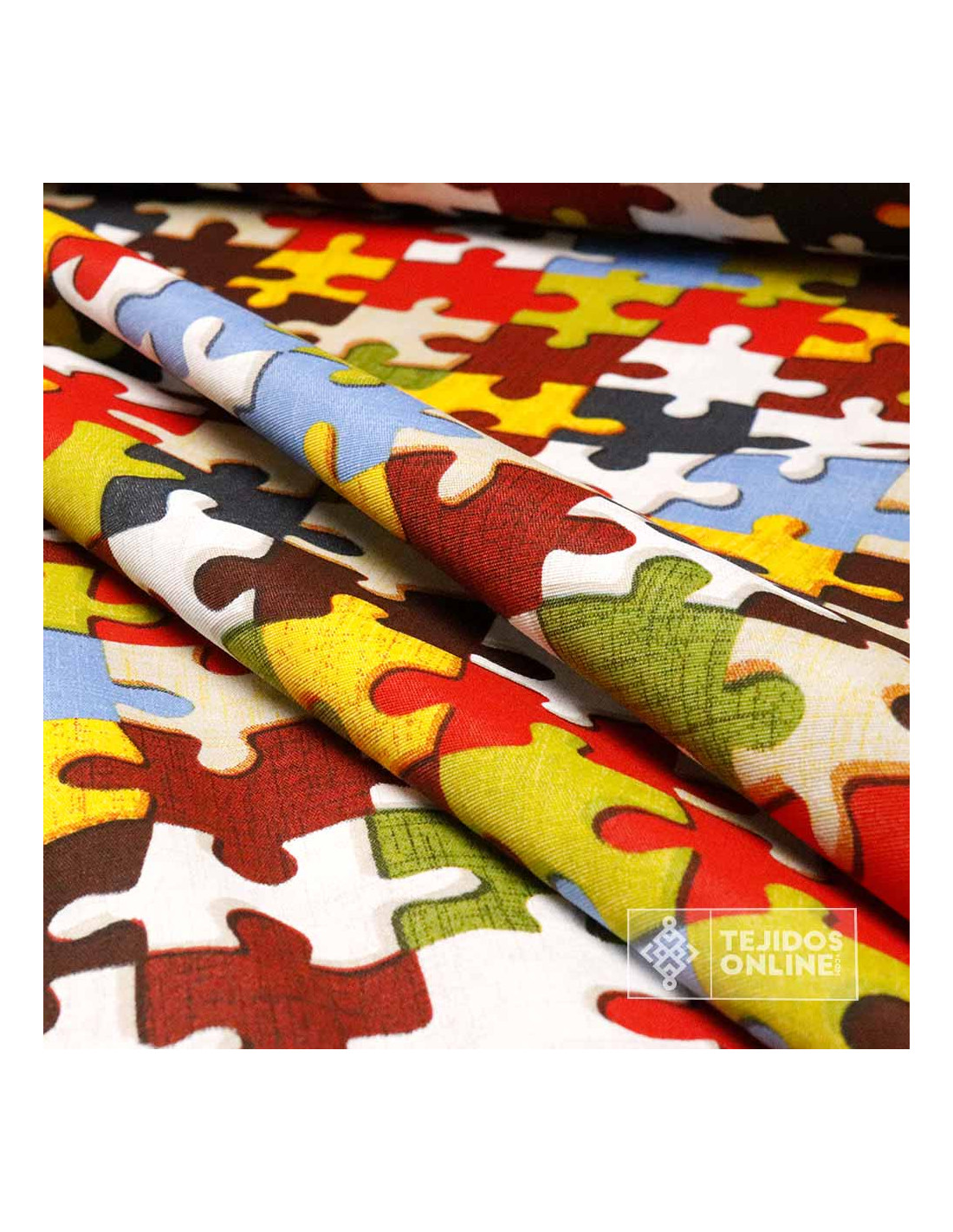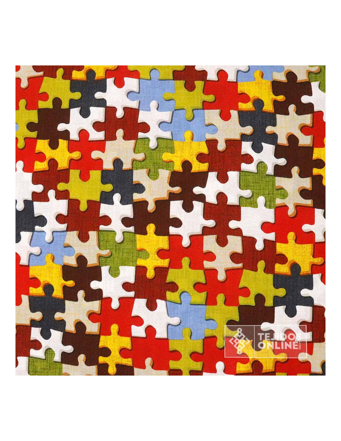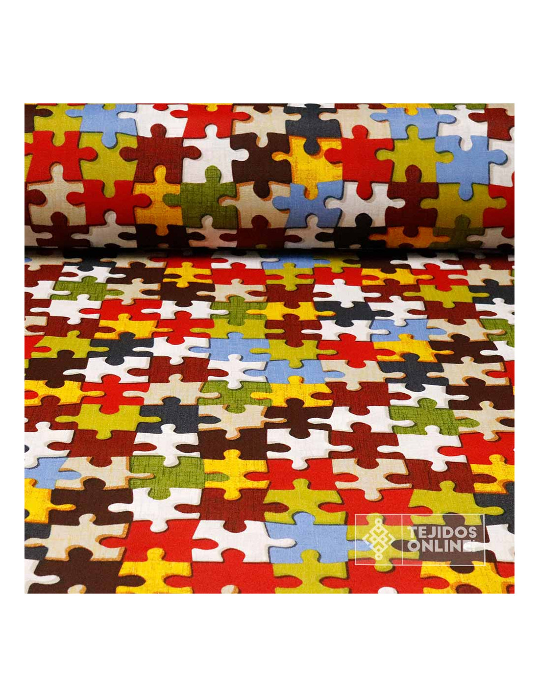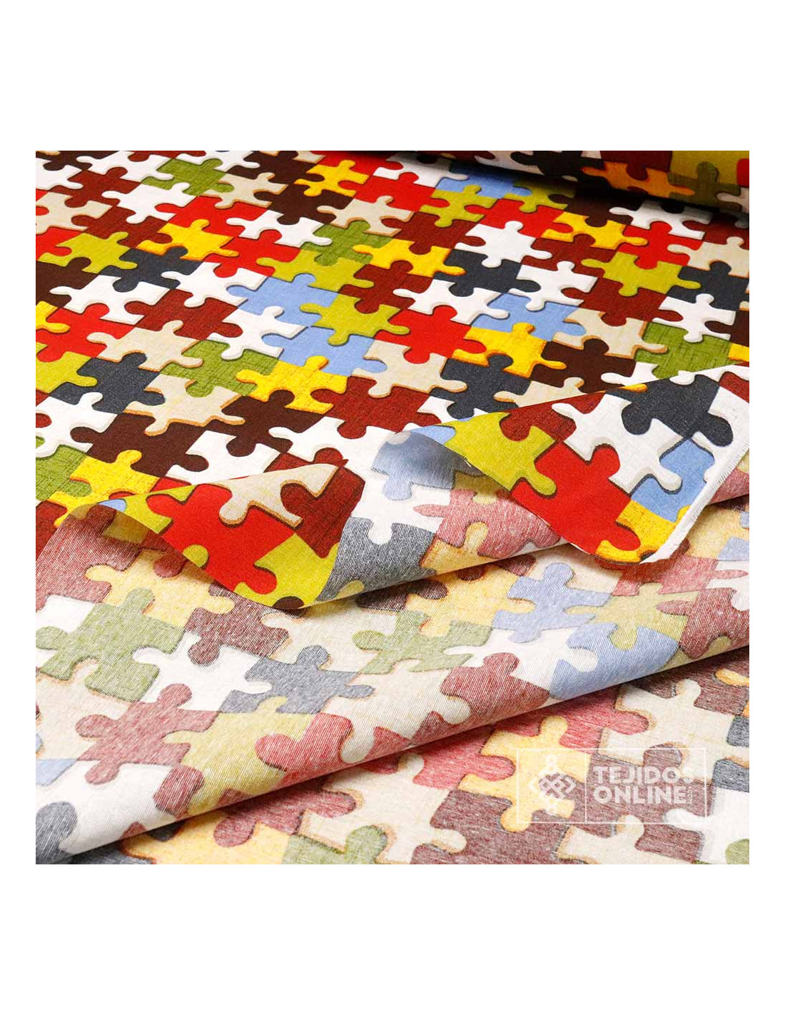 El tamaño aproximado de cada pieza de puzzle es de 6 x 6,5 cm, por lo que el estampado se aprecia muy bien y queda muy vistoso en bolsos, cojines, complementos y proyectos de costura creativa. Es una tela práctica, fácil de trabajar y con un diseño que no pasa desapercibido.