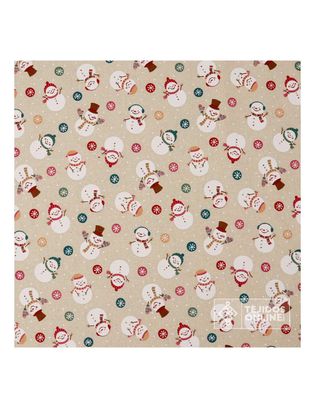 Loneta Navidad 100% Algodón Muñeco Nieve