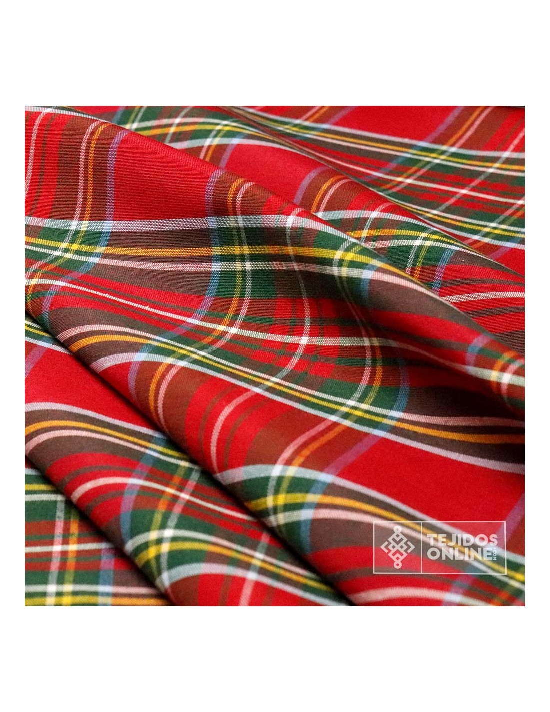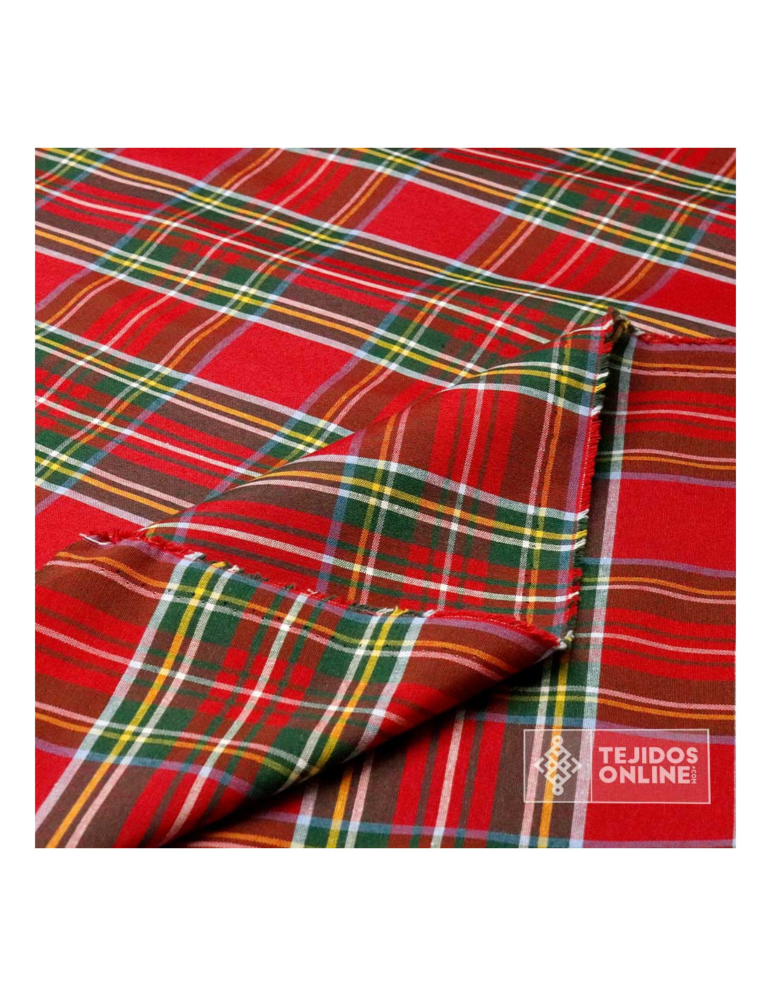La Tela Cuadro Escoces Rojo es un tejido con cuerpo, con cierta finura y resistente. Tejido fondo rojo con estampaciones de rayas en color rojo y verde las más predominantes formando entre sí el típo cuadro escoces. Es un tejido con 1.40 metros de ancho lo cual se considera doble de ancho, es suave al tacto y resistente gracias a su composición en 50% Poliéster y 50% Algodón.