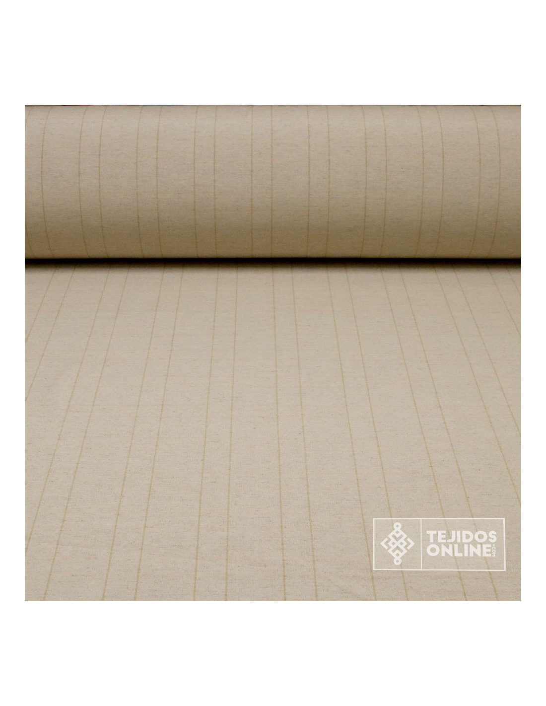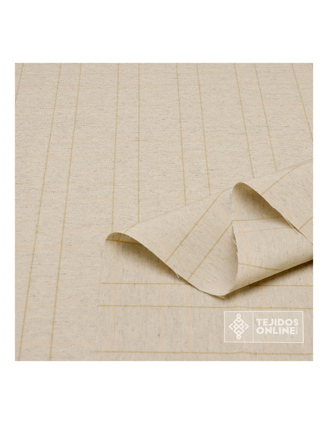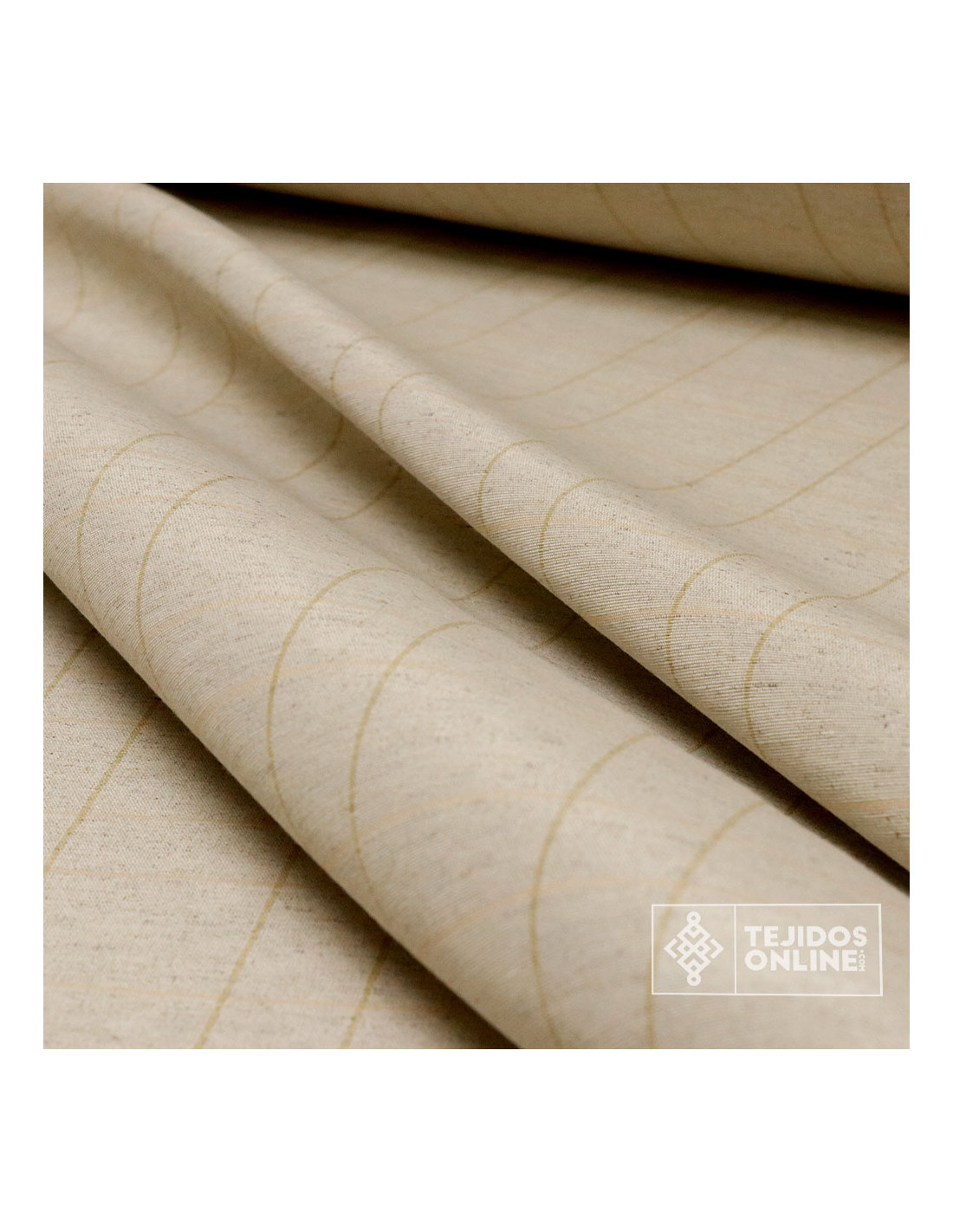 La Tela Cuadro Escoces en fondo lino con un tamaño es un tejido con cuerpo, con cierta finura y resistente. Tejido en gran variedad de estampaciones de rayas en colores sobre una base color lino formando entre sí el típo cuadro escoces. Es un tejido con 1.40 metros de ancho lo cual se considera doble de ancho, es suave al tacto y resistente gracias a su composición en 50% Poliéster y 50% Algodón.