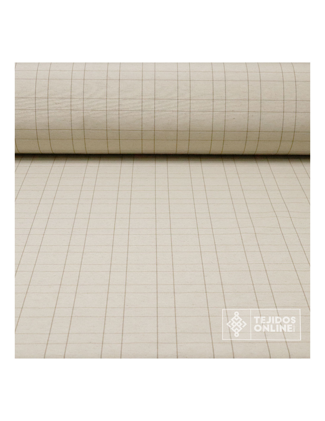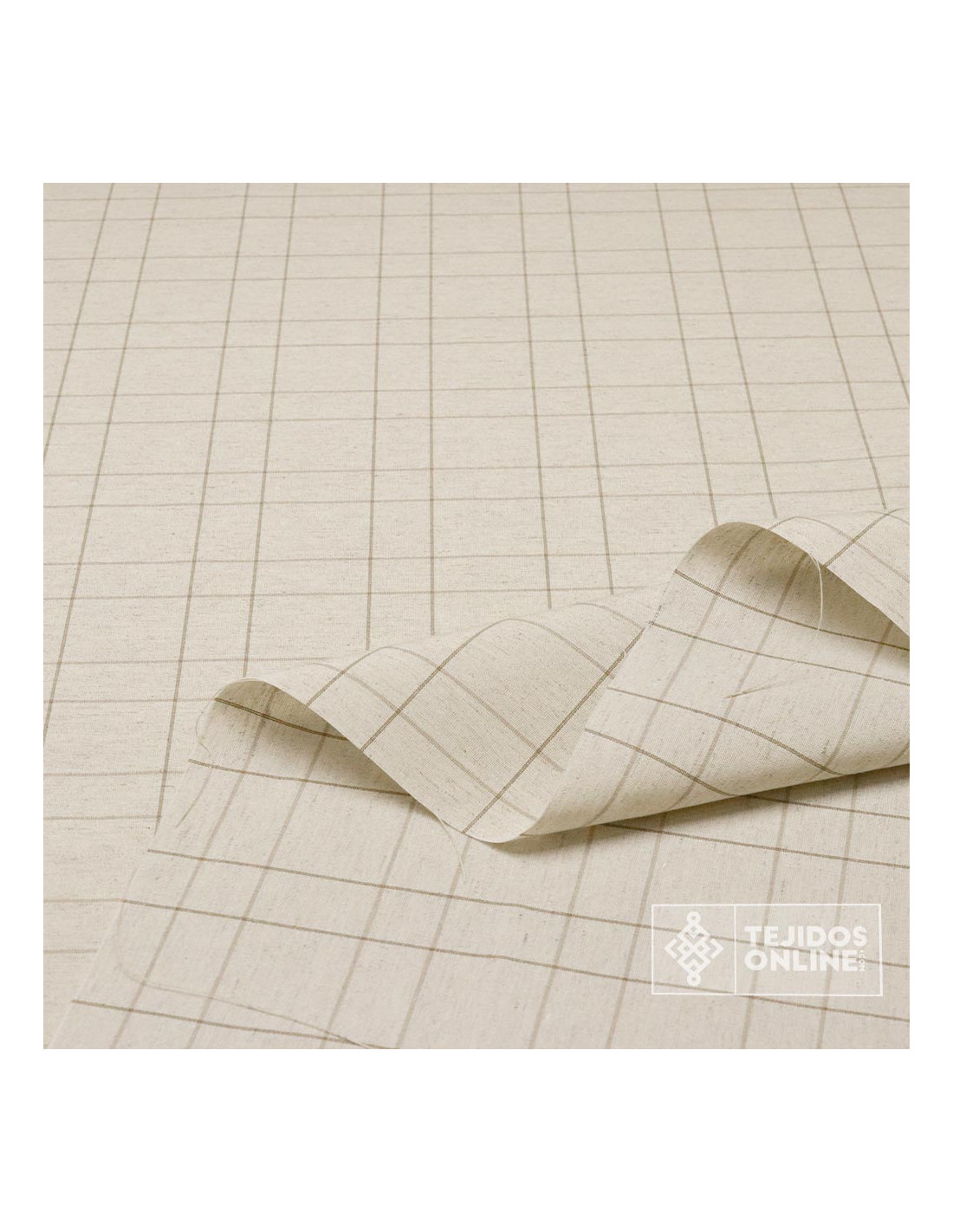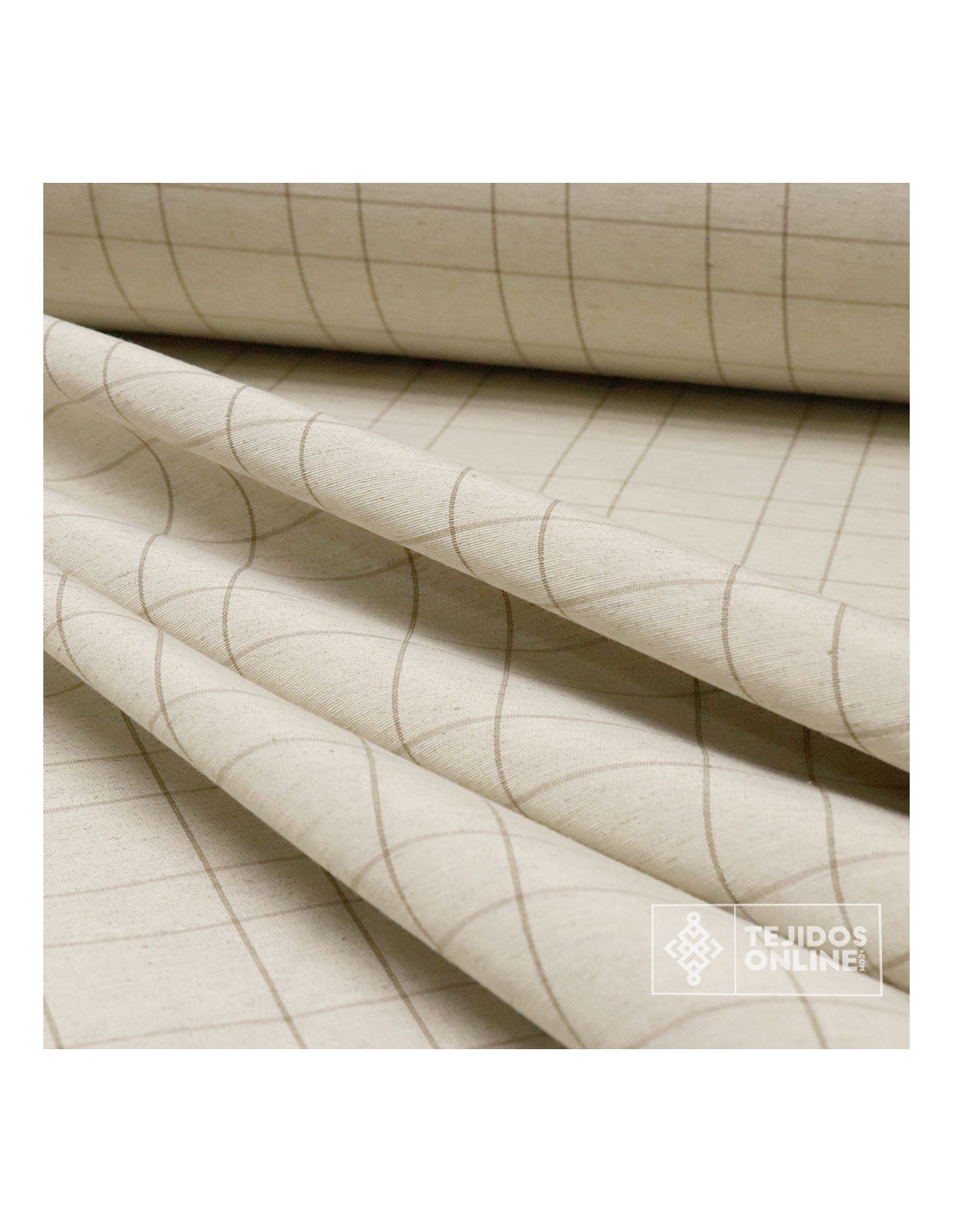 La Tela Cuadro Escoces en fondo lino con un tamaño es un tejido con cuerpo, con cierta finura y resistente. Tejido en gran variedad de estampaciones de rayas en colores sobre una base color lino formando entre sí el típo cuadro escoces. Es un tejido con 1.40 metros de ancho lo cual se considera doble de ancho, es suave al tacto y resistente gracias a su composición en 50% Poliéster y 50% Algodón.