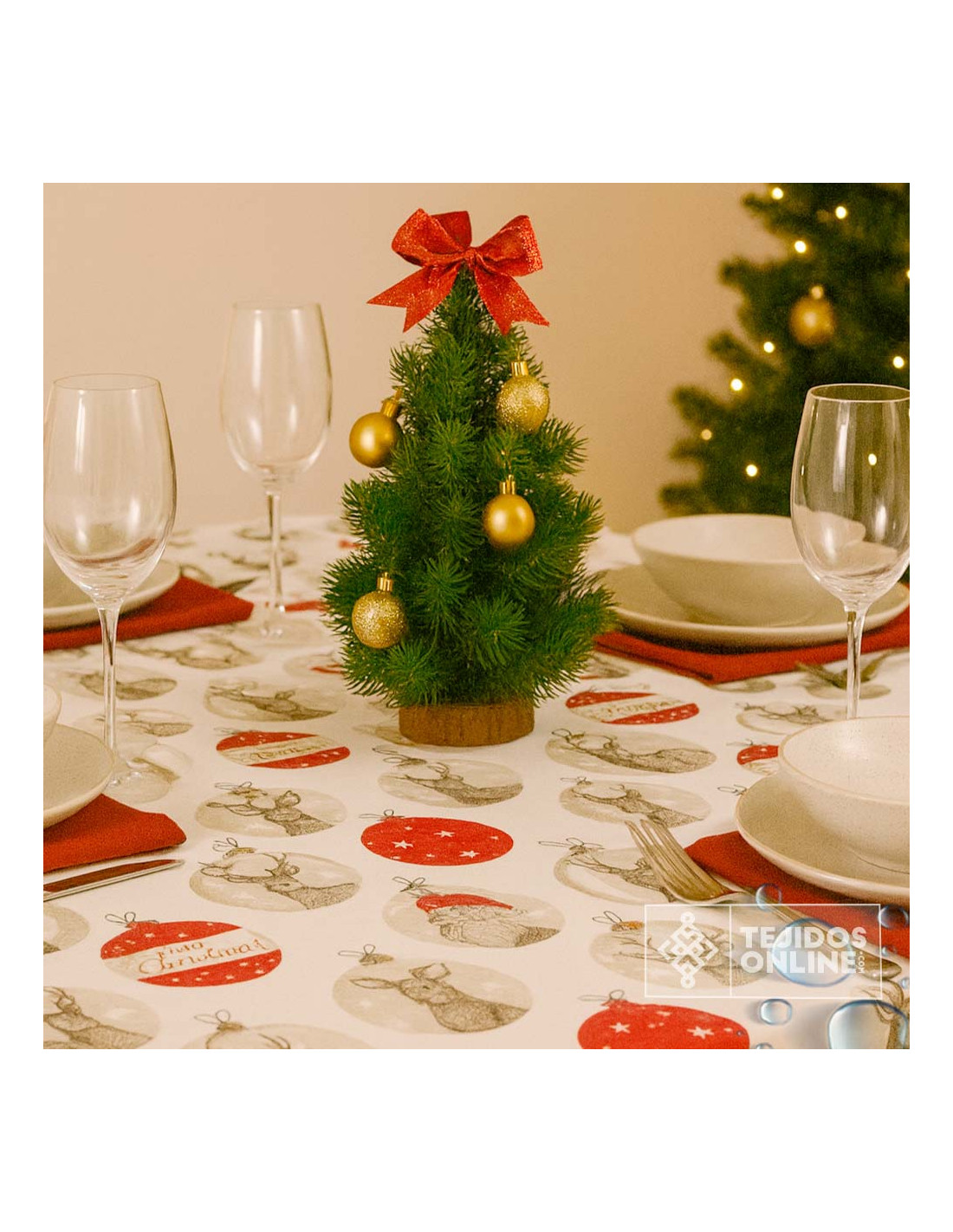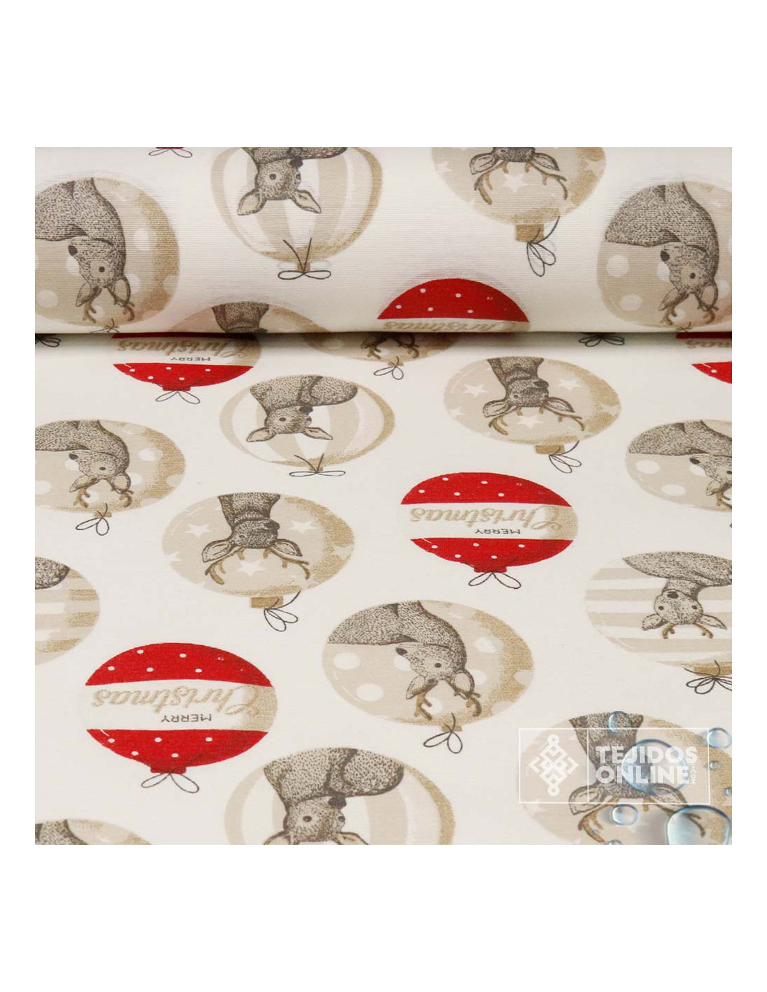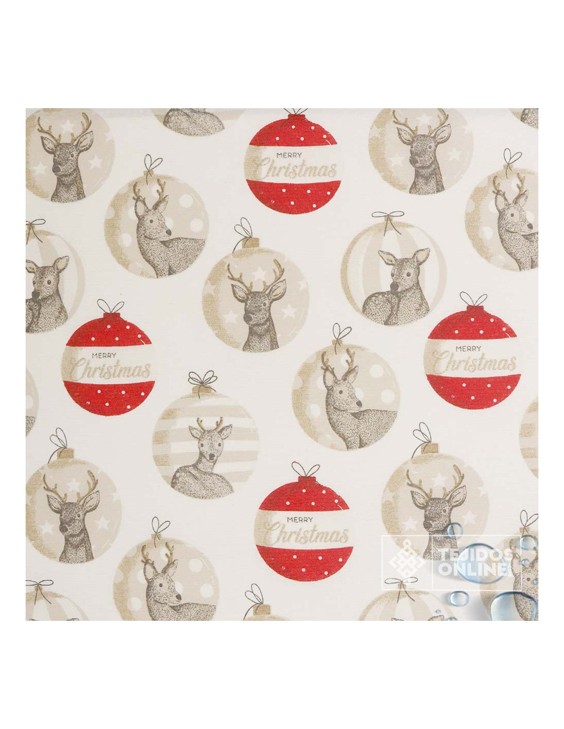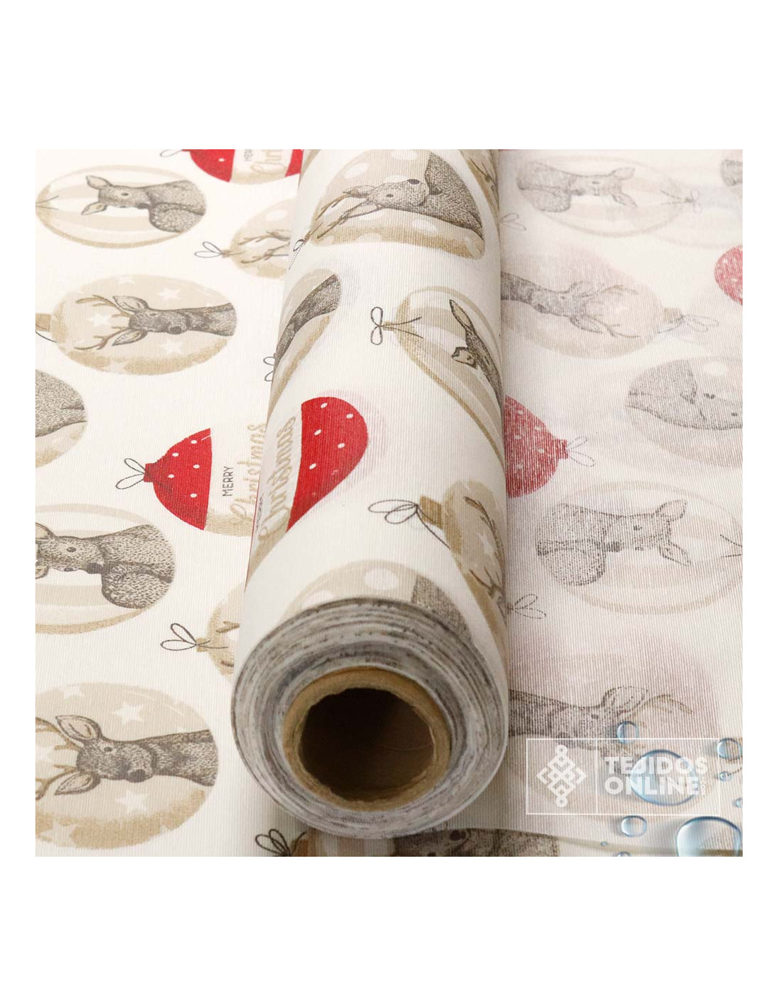Una de su gran ventaja de este tejido es que se pueden lavar cómodamente en la lavadora siendo bastante resistentes al desgaste o bien con un simple paño húmedo. La Tela Loneta Resinada Navidad Beige con Ciervos y Bolas une la estética navideña con la funcionalidad, ofreciendo un tejido impermeable, duradero y decorativo que hará brillar tu hogar esta Navidad.