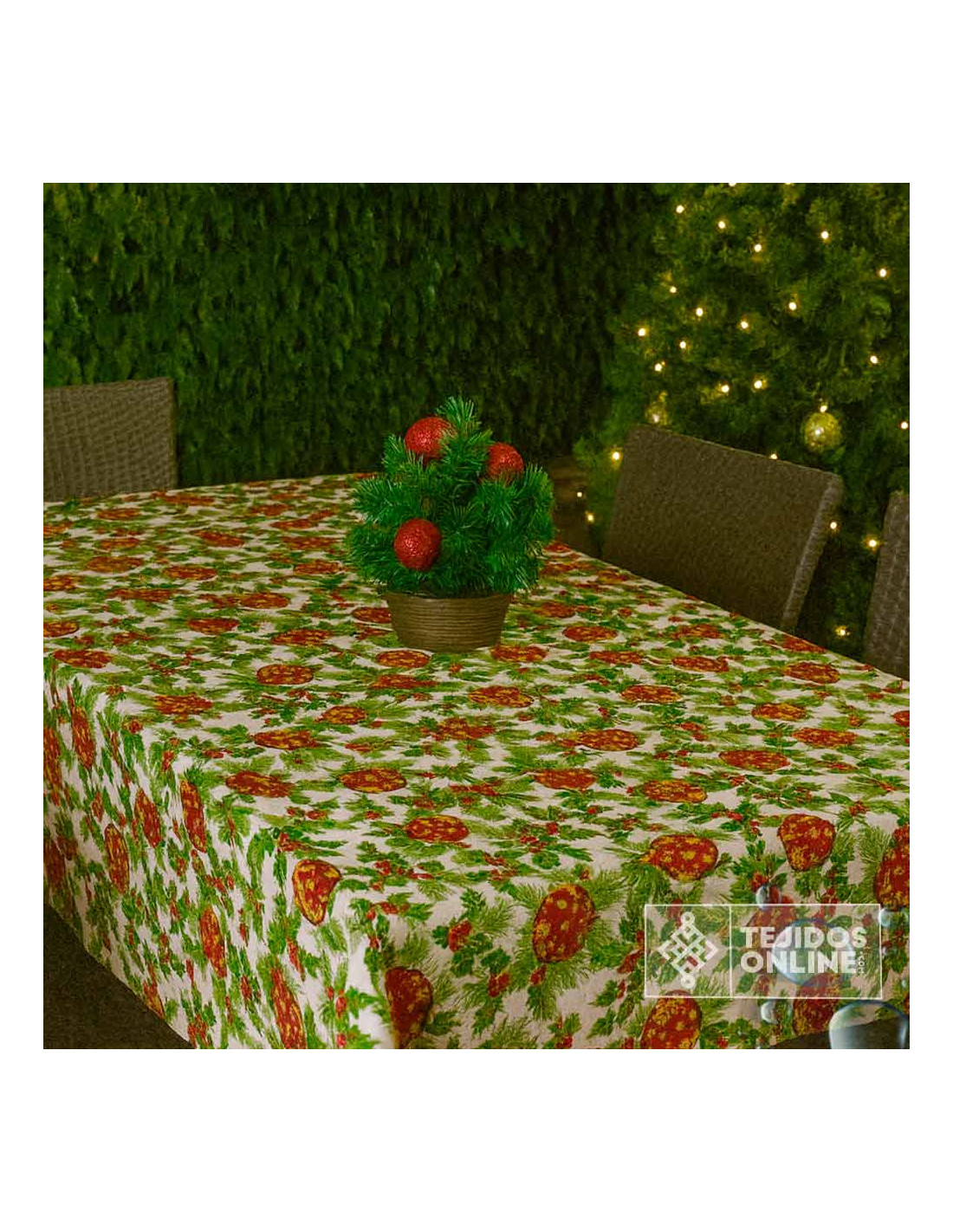 Mantel Navidad Fondo Beige con Bolas y Acebo
