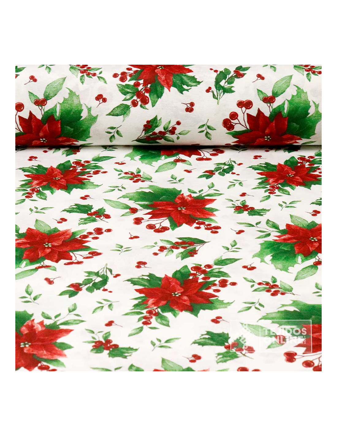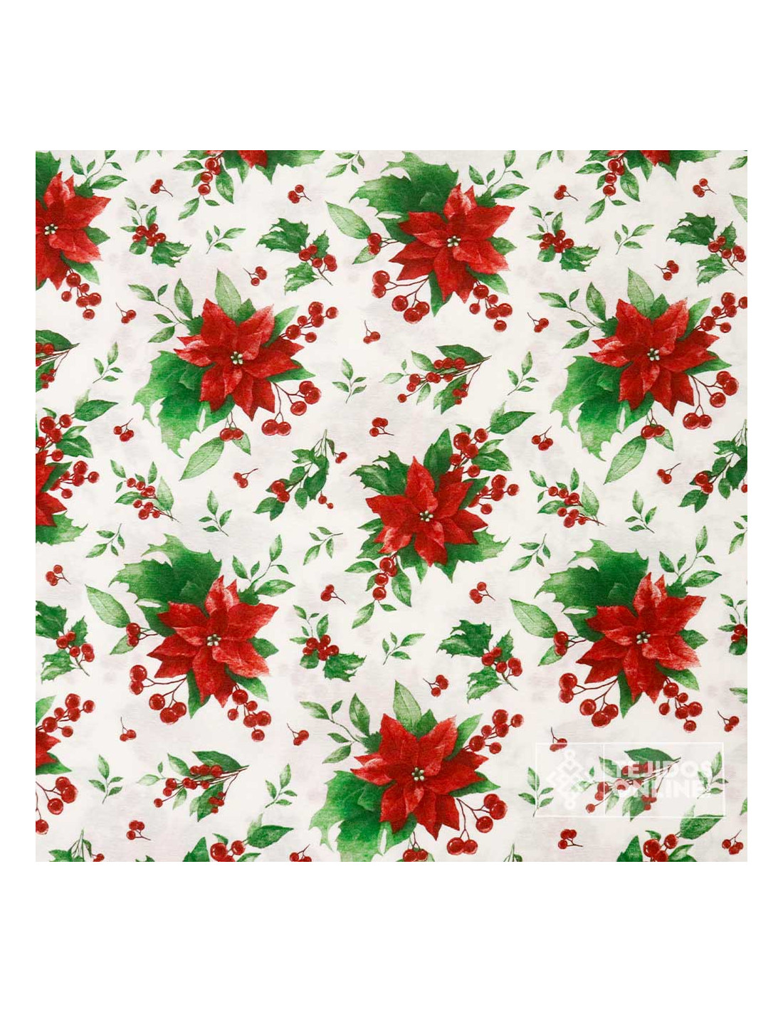 Tela de Navidad Flor Pascua Fondo Blanco