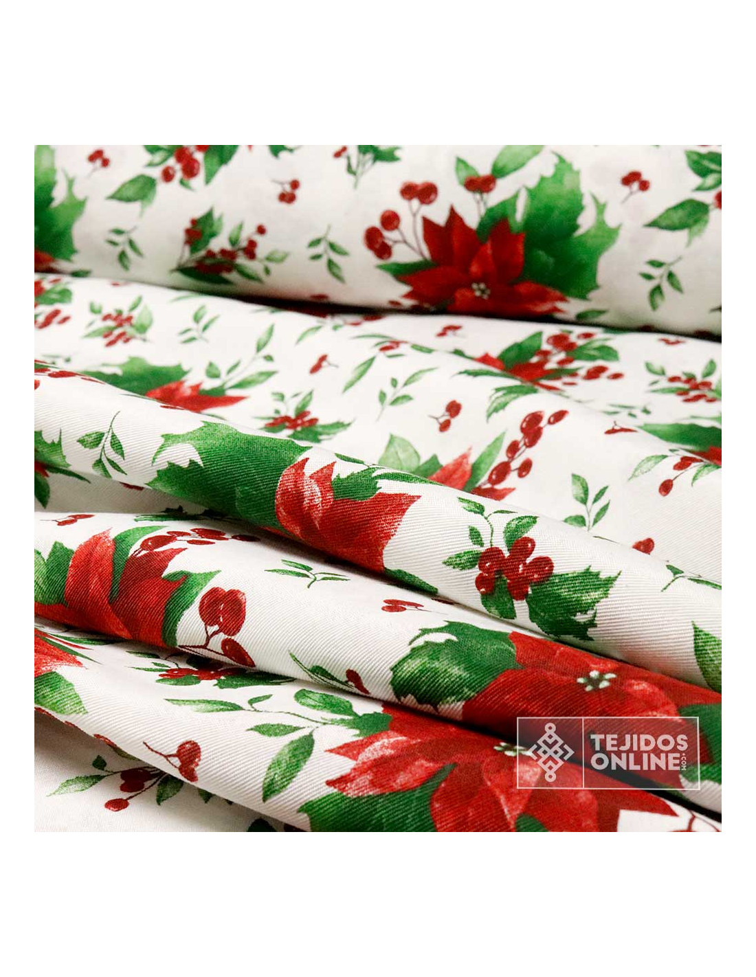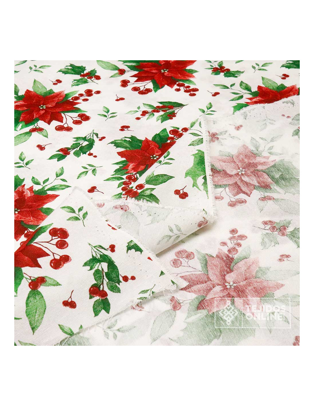 Nuestra Tela de Navidad con flores de pascua, es un tejido de loneta con cuerpo, con cierta finura y resistente. Tejido con estampación de flores de pascua y hojas verdes sobre un fondo de color blanco. Una coosa a tener en cuenta, es un tejido con estampación asimétrica, es decir, tejido que podemos colocar en varias direcciones. A continuación te contamos sus principales usos.